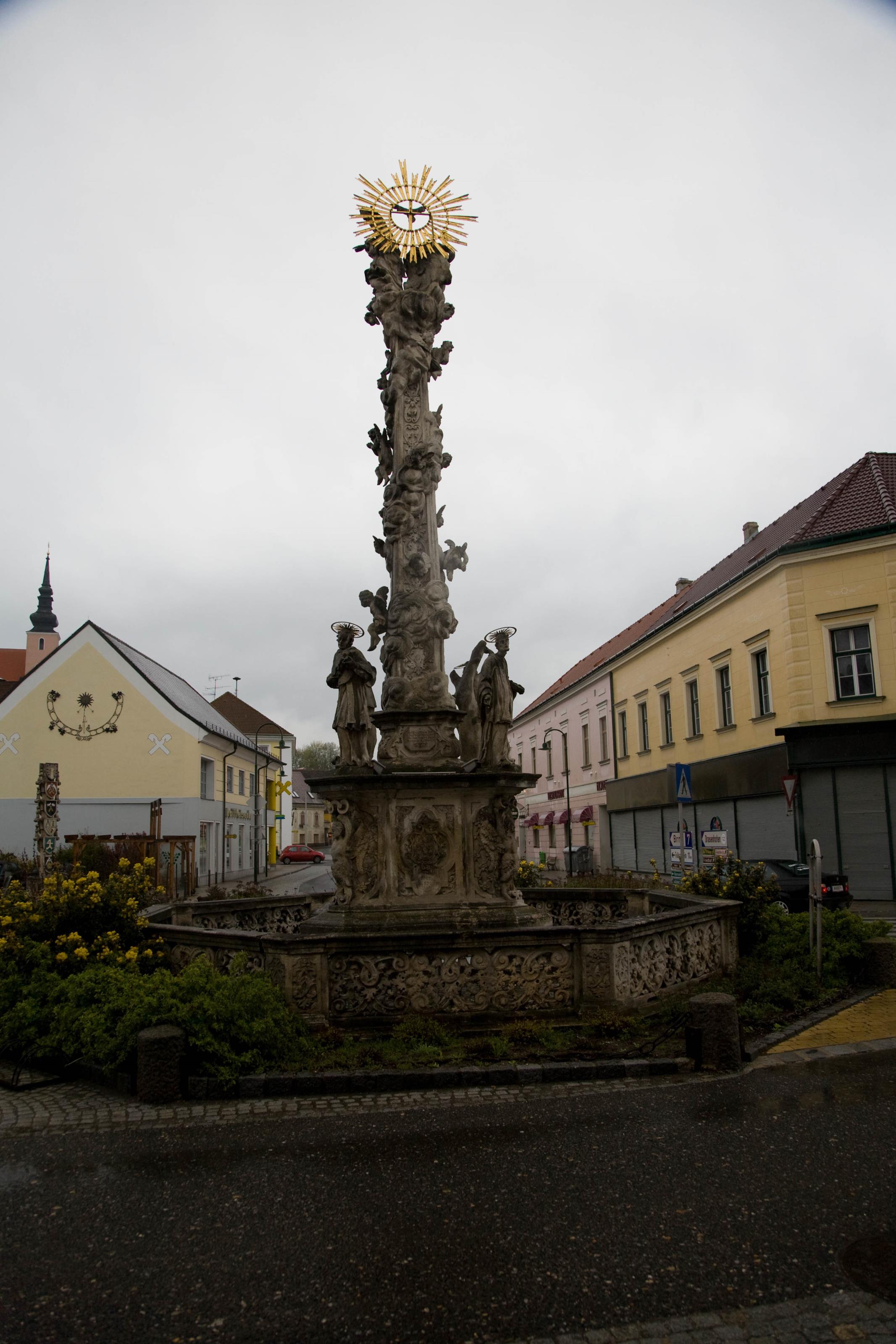 Dreifaltigkeitsplatz i Poysdorfer i Österrike.Sökord: byggnaderpoysdorferösterrikedreifaltigkeitsplatzrondellmonument Storleken på denna bild är 2133 x 3200 pixlar. Denna bild har mycket hög upplösning. Detta ger en bild på 18 x 27 cm med 300 dpi. Bildens id är 4310, anges vid beställning.