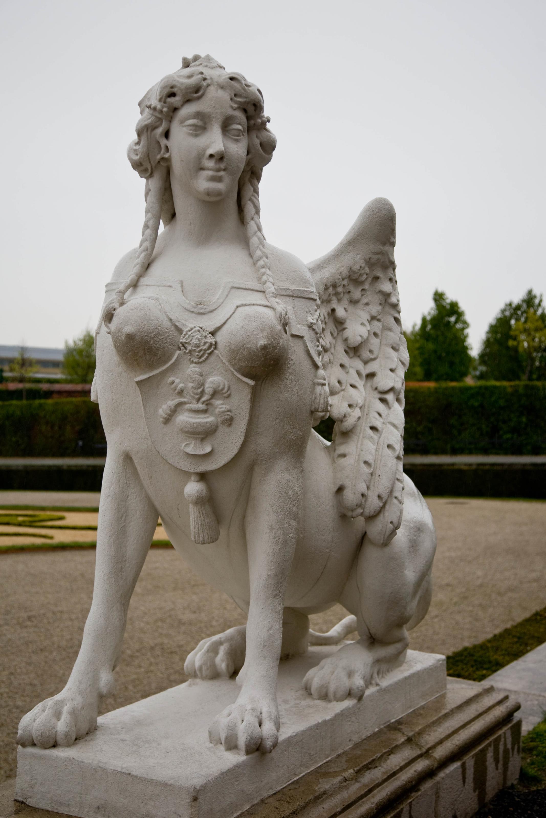 Sfinx på Belvedere i Wien, Österrike. En kvinnlig varelse med lejonkropp, människohuvud, bara bröst och vingar.Sökord: sfinxbelvederewienösterrikelejonmänniskakvinnabröstvingarstatymonument Storleken på denna bild är 2134 x 3200 pixlar. Denna bild har mycket hög upplösning. Detta ger en bild på 18 x 27 cm med 300 dpi. Bildens id är 4329, anges vid beställning.