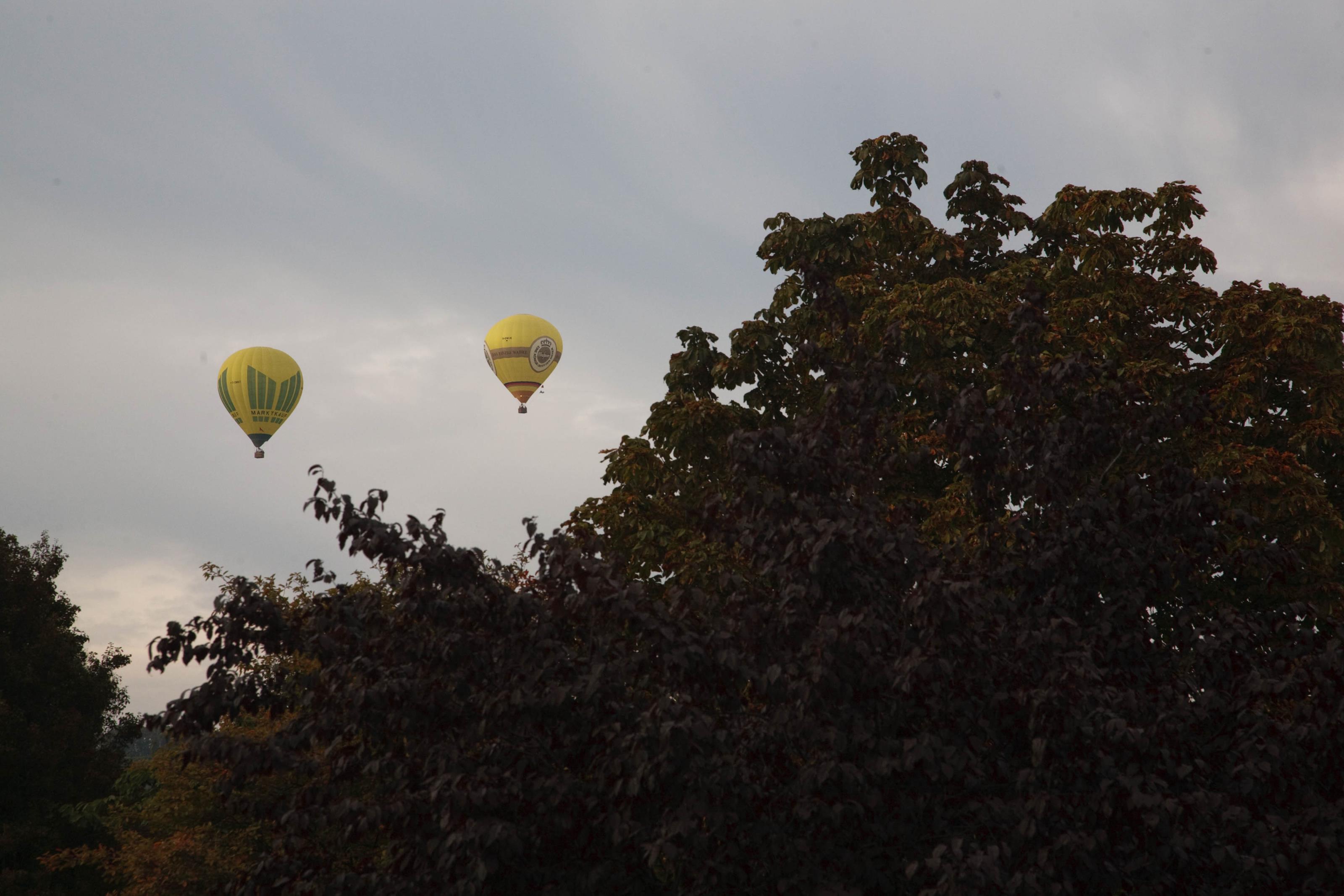 Luftballong flyger över en stad. Sökord: flyga luftballong luftballonger lyftballong tyskland varmluft varmluftballong würzburg