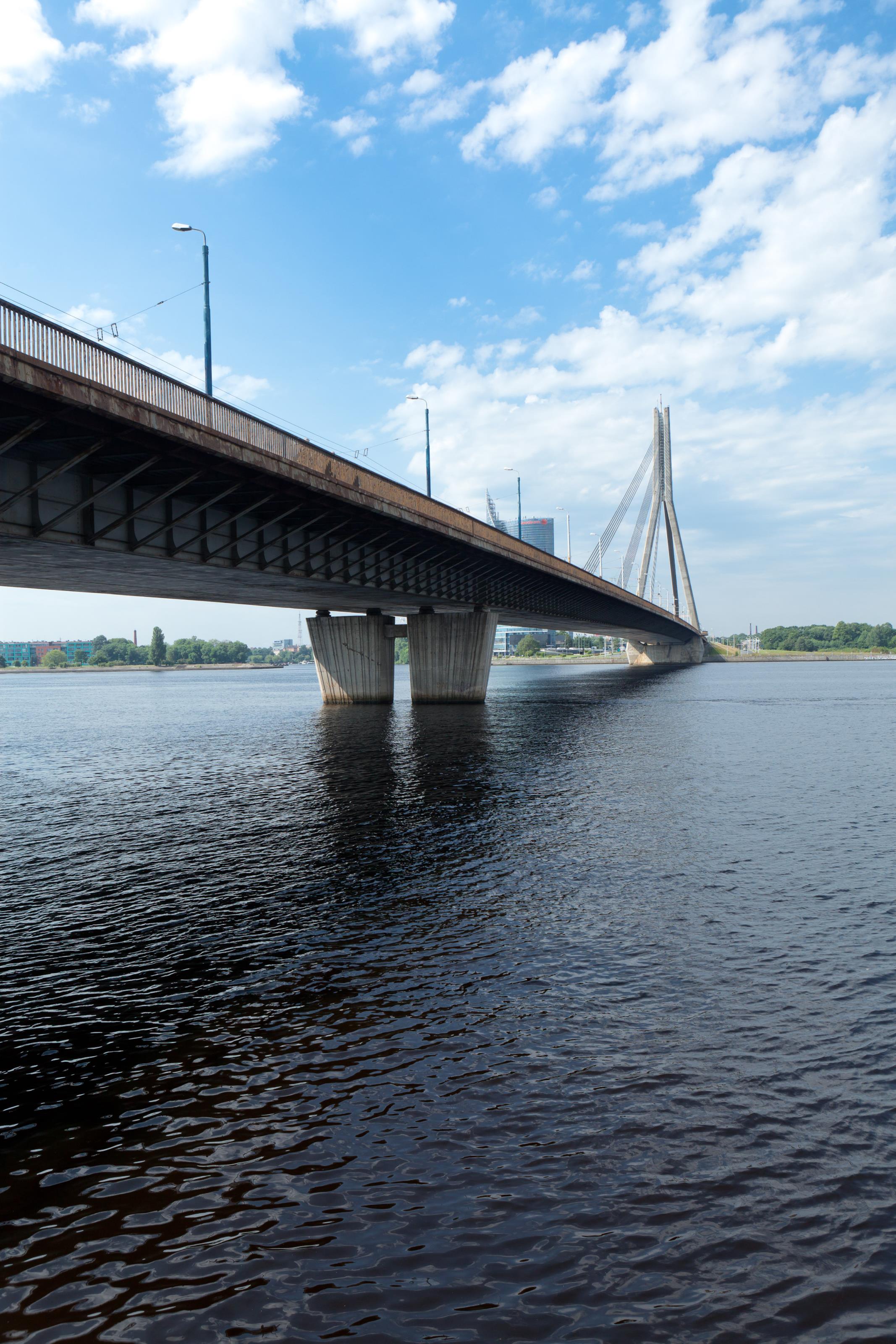 Bron Vansu, en bro över Daugava i Riga, Lettland.Sökord: brobroardaugavaflodfloderlettlandrigavansuvansubronvattenvattendrag Storleken på denna bild är 2134 x 3200 pixlar. Denna bild har mycket hög upplösning. Detta ger en bild på 18 x 27 cm med 300 dpi. Bildens id är 7862, anges vid beställning.