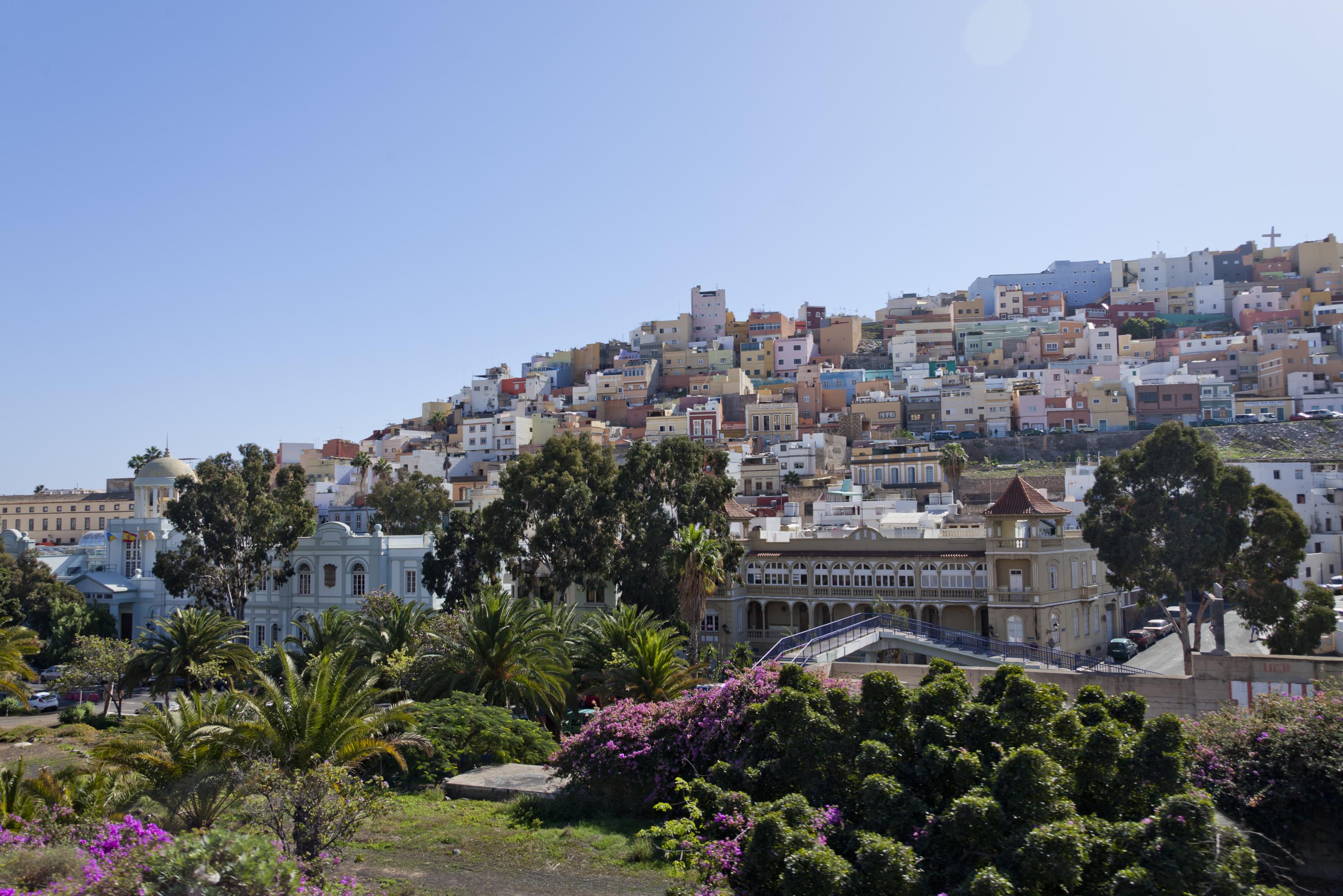 Bostadshus på ett berg i Las Palmas, Gran Canaria.Sökord: byggnadbyggnadergrancanariakanarieöarnalaspalmasspanienstadstadsmiljöstäder Storleken på denna bild är 3200 x 2134 pixlar. Denna bild har mycket hög upplösning. Detta ger en bild på 27 x 18 cm med 300 dpi. Bildens id är 8907, anges vid beställning.