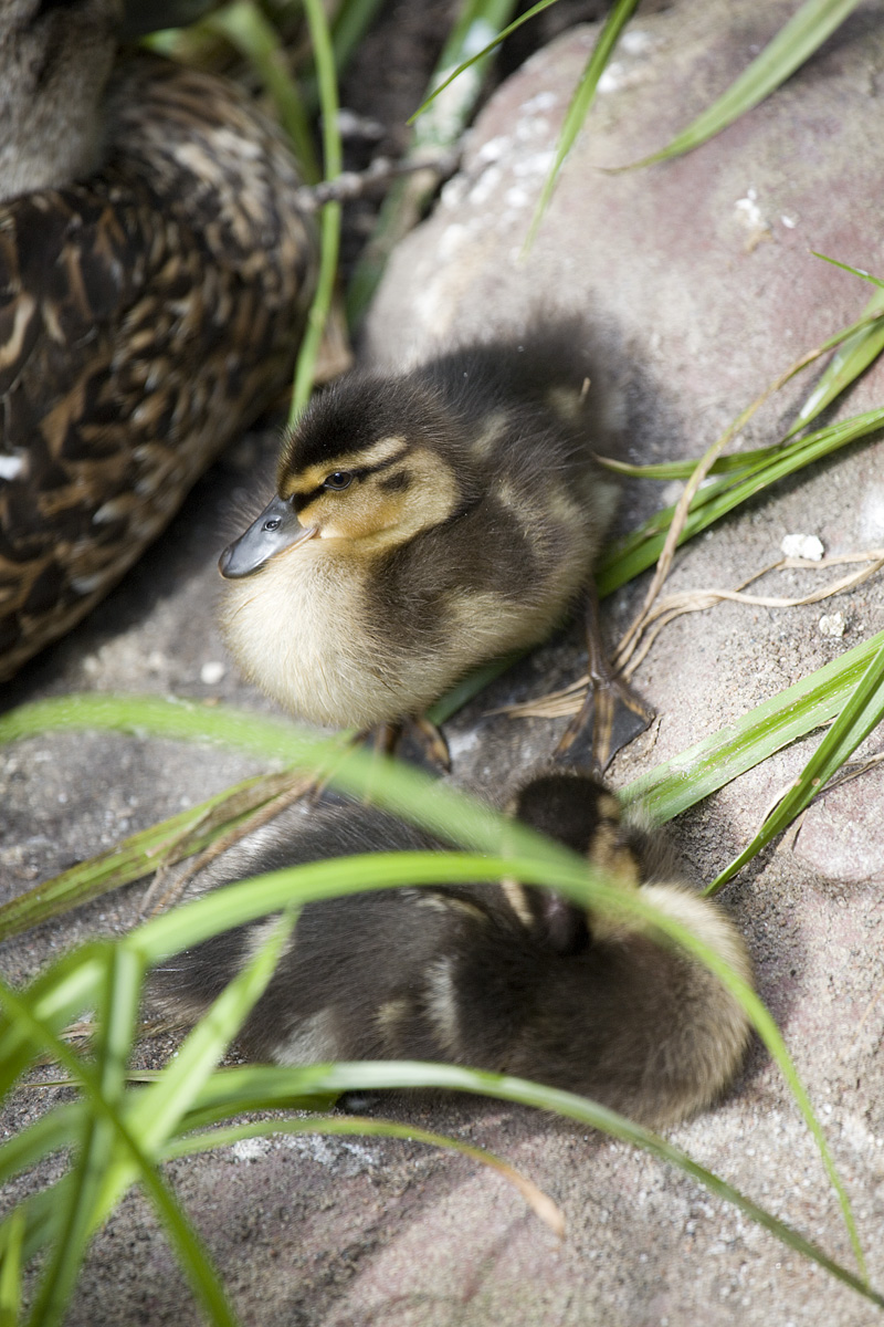 Två små gräsandsungar ligger nära sin mamma.Sökord: tvåsmågräsandsungarbarnvassstenvatten Storleken på denna bild är 800 x 1200 pixlar. Detta ger en bild på 7 x 10 cm med 300 dpi. Bildens id är 3736, anges vid beställning.