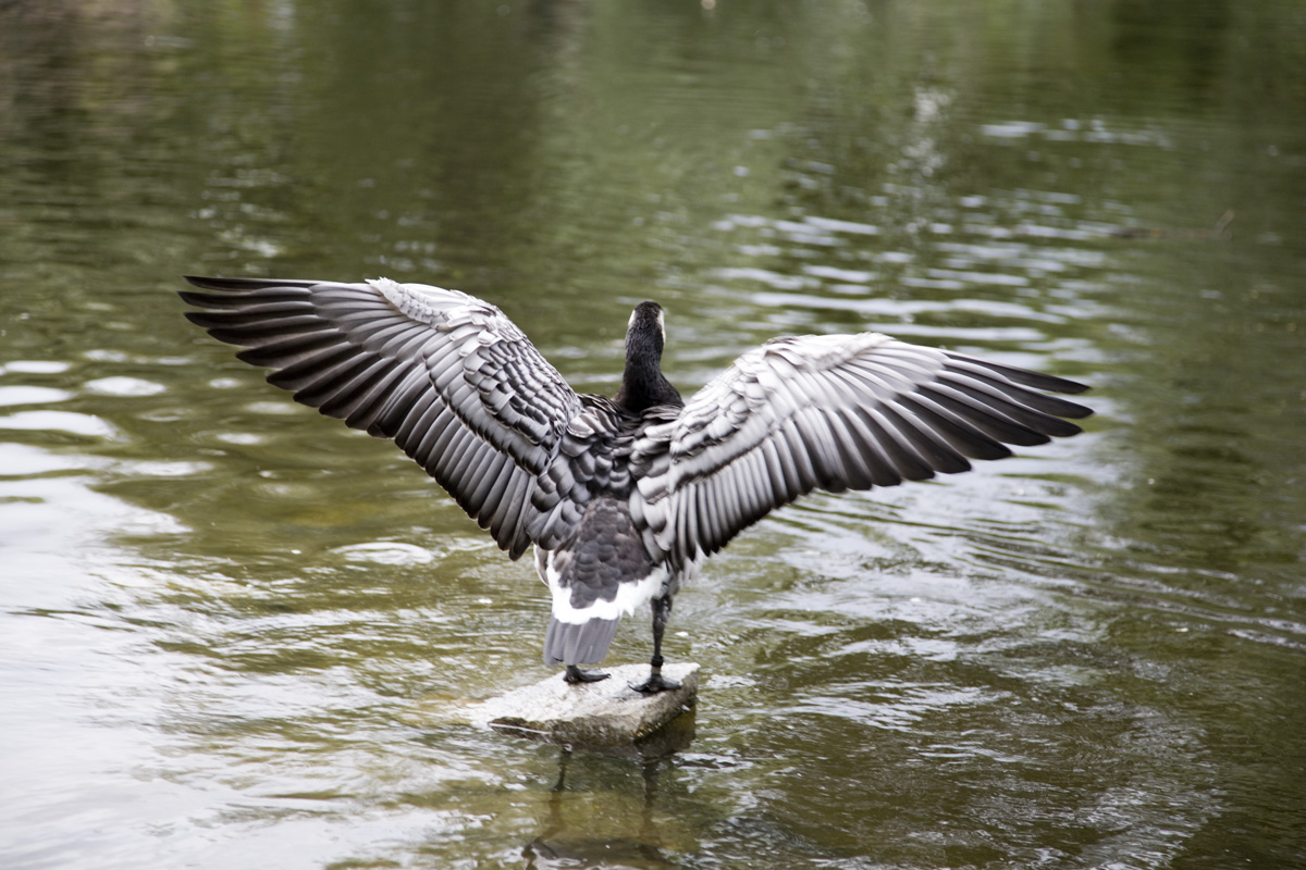 En kanadgås som brer ut sina vingar.Sökord: vattensjöstenkanadagässkanadagåsvingarfjädrarflyga Storleken på denna bild är 1200 x 800 pixlar. Detta ger en bild på 10 x 7 cm med 300 dpi. Bildens id är 3746, anges vid beställning.