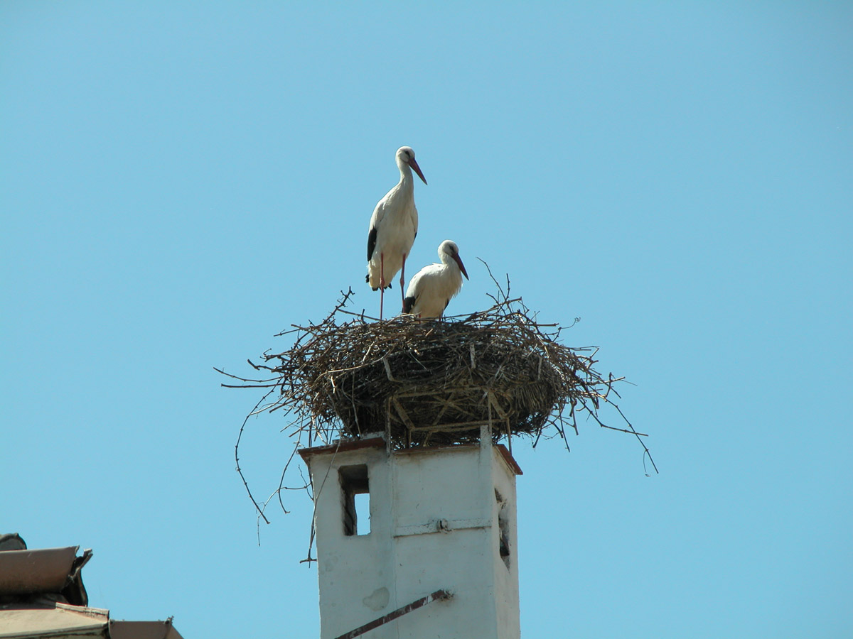 Två vita storkar i sitt bo på en skorsten i staden Rust, Österrike.Sökord: vitvitastorkstorkarösterrikeboskorstenfågelfåglarrust Storleken på denna bild är 1200 x 900 pixlar. Detta ger en bild på 10 x 8 cm med 300 dpi. Bildens id är 3930, anges vid beställning.