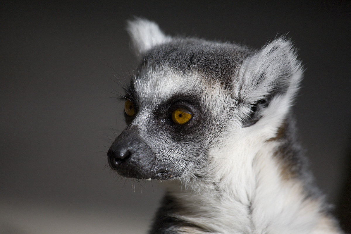 Huvudet på en grå och vit lemur.Sökord: lemurprimatlemurergråapa Storleken på denna bild är 1200 x 800 pixlar. Detta ger en bild på 10 x 7 cm med 300 dpi. Bildens id är 3809, anges vid beställning.