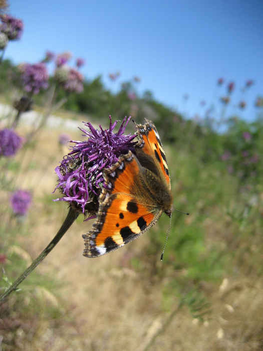 En nässelfjäril som stretar mot vindenSökord: Fjärilinsektvingarvindtistel Storleken på denna bild är 525 x 700 pixlar. OBS! Denna bild har låg upplösning. Det kan finnas liknande bilder med hög upplösning. Detta ger en bild på 4 x 6 cm med 300 dpi. Bildens id är 1607, anges vid beställning.