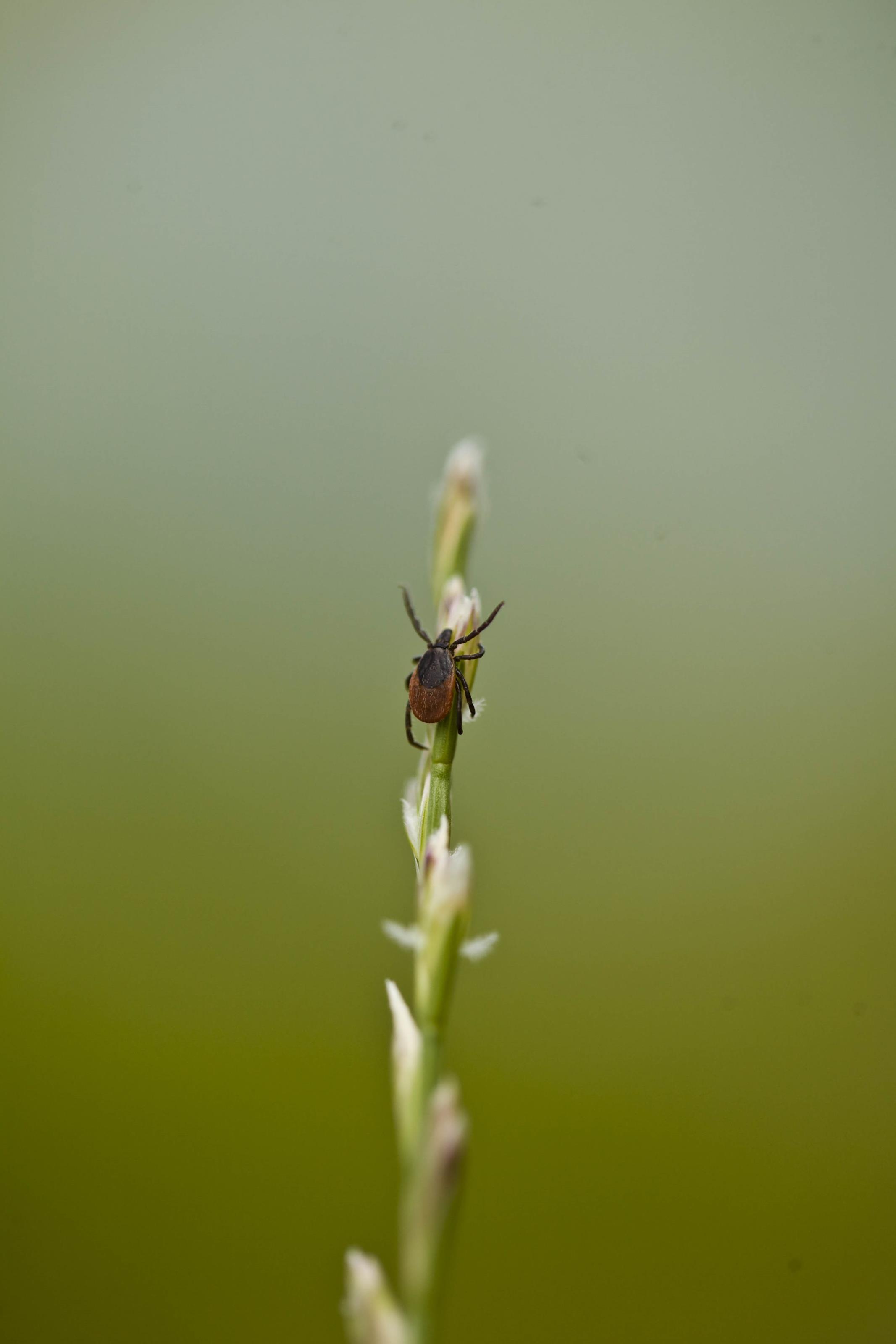 En fästing på ett grässtrå. Väntar på ett offer att suga blod från. Kan smittas med borelia.Sökord: fästingfästingarkvalstertbcboreliafästingbett Storleken på denna bild är 2133 x 3200 pixlar. Denna bild har mycket hög upplösning. Detta ger en bild på 18 x 27 cm med 300 dpi. Bildens id är 5530, anges vid beställning.