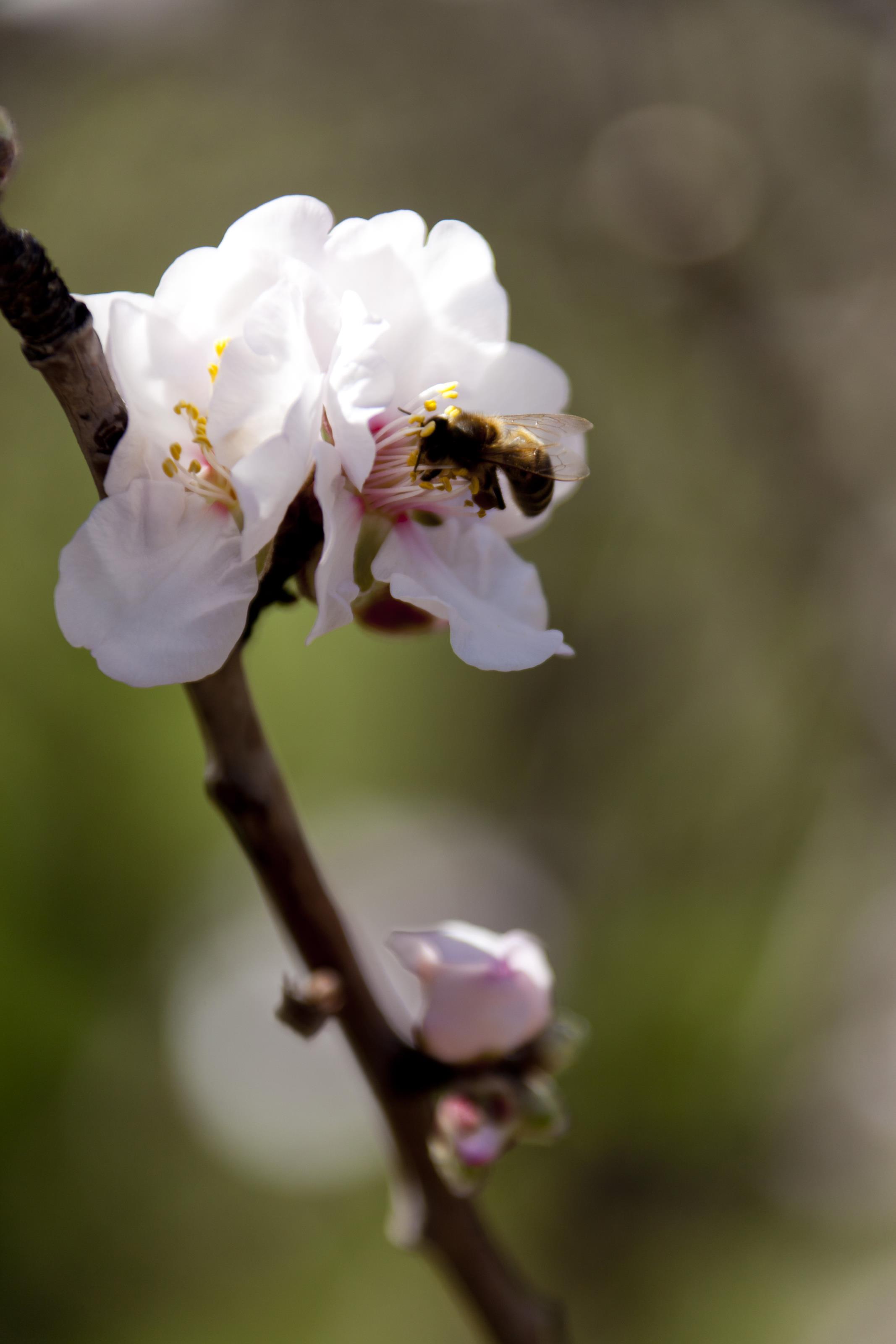 Närbild på mandelträdets blommor. Sökord: barranco de guayadeque bi bin blomma blommor gran canaria ingenio insekt insekter kanarieöarna mandel mandelblommor mandelträd spanien
