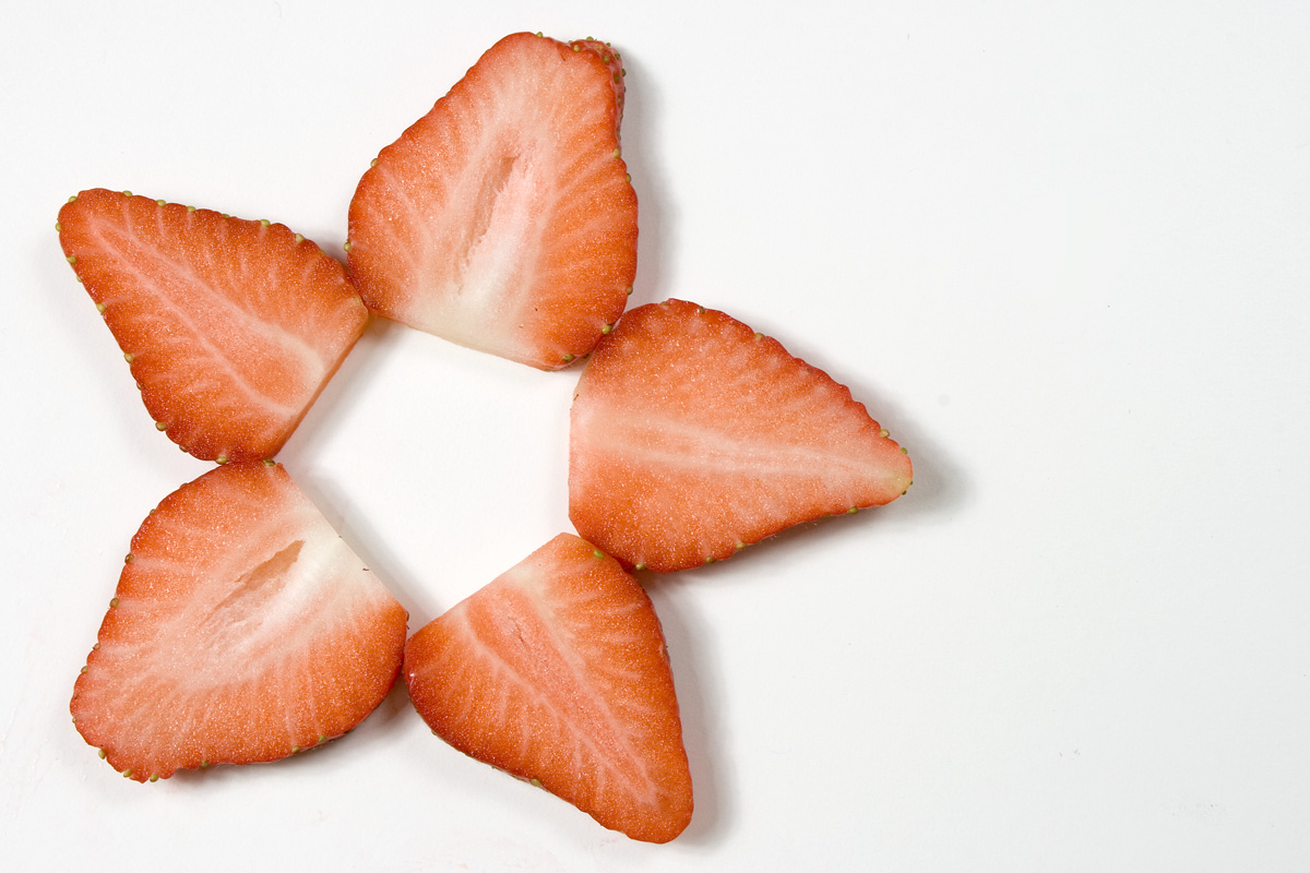 En stjärna av skivade jordgubbar.Sökord: jordgubbarskivorstjärnarödrött Storleken på denna bild är 1200 x 800 pixlar. Detta ger en bild på 10 x 7 cm med 300 dpi. Bildens id är 3043, anges vid beställning.