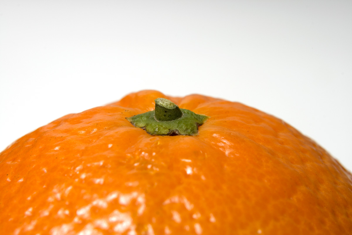 Övre delen på en mandarin.Sökord: mandarinclementinsatsumascitrusskalorange Storleken på denna bild är 1200 x 800 pixlar. Detta ger en bild på 10 x 7 cm med 300 dpi. Bildens id är 3038, anges vid beställning.