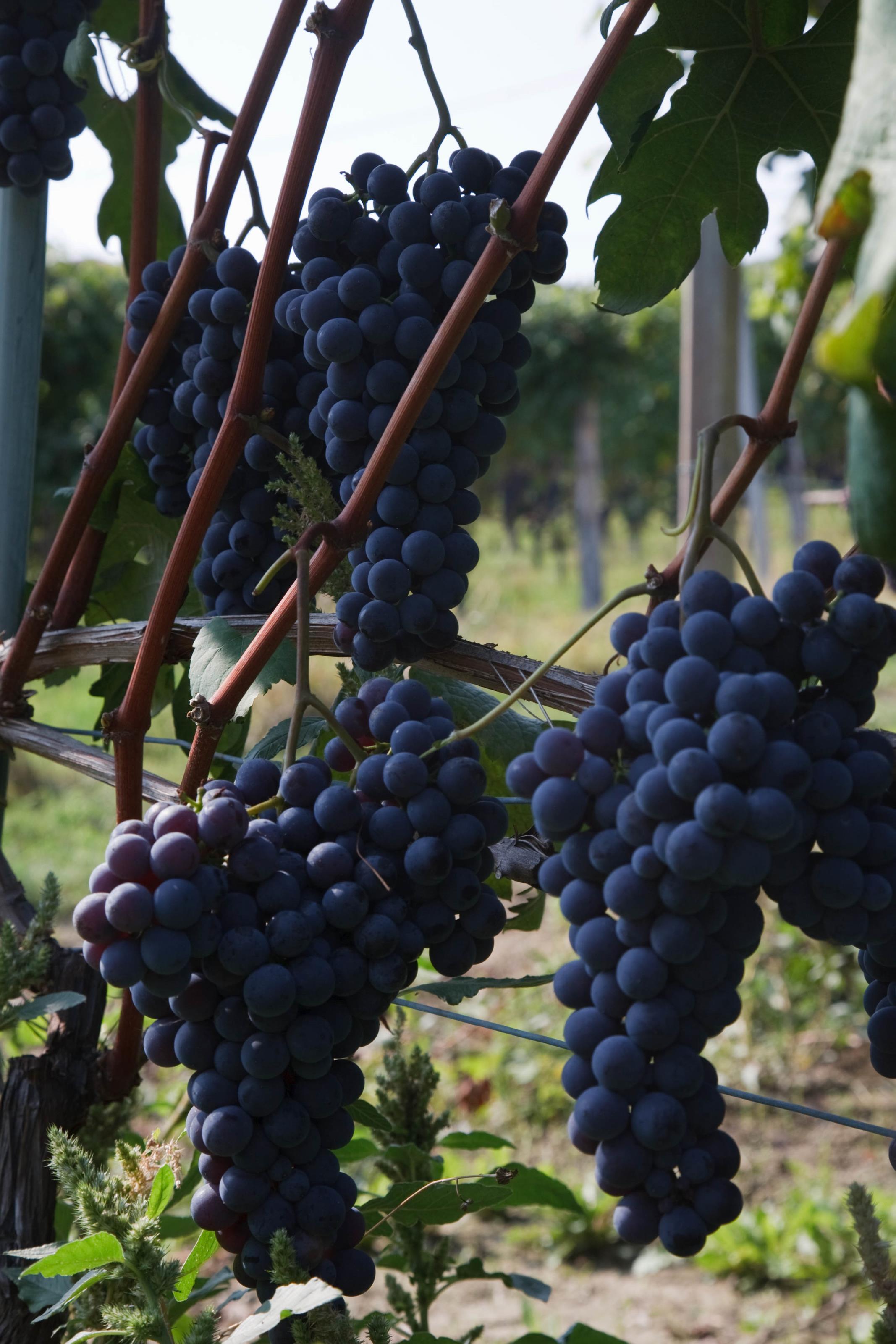 Vinklasar hänger på vinrankorna på en vinfält.Sökord: blåblåadruvorfruktitalienvinvindruvorvingårdvinodlingarvinrankor Storleken på denna bild är 2134 x 3200 pixlar. Denna bild har mycket hög upplösning. Detta ger en bild på 18 x 27 cm med 300 dpi. Bildens id är 6806, anges vid beställning.