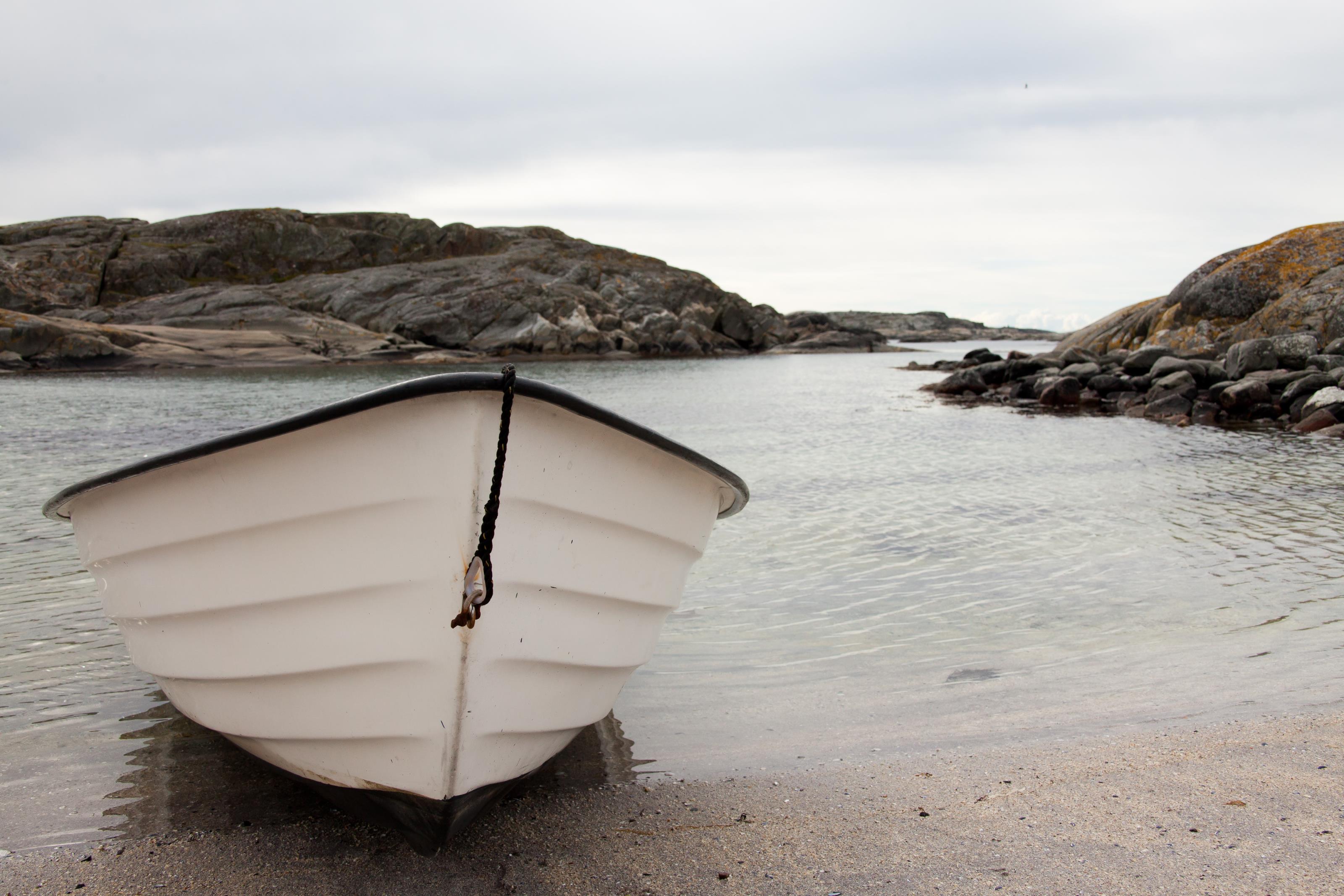 En vit båt ligger i strandkanten.Sökord: bergbåthavhavethärmanöklippormotorbåtvattenvästkusten Storleken på denna bild är 3200 x 2134 pixlar. Denna bild har mycket hög upplösning. Detta ger en bild på 27 x 18 cm med 300 dpi. Bildens id är 8213, anges vid beställning.