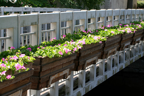 En bro med vackra blommlådor.Sökord: brobroräckeräckestaketblommlådorblommorblomlådorväxter Storleken på denna bild är 600 x 400 pixlar. OBS! Denna bild har låg upplösning. Det kan finnas liknande bilder med hög upplösning. Detta ger en bild på 5 x 3 cm med 300 dpi. Bildens id är 1347, anges vid beställning.