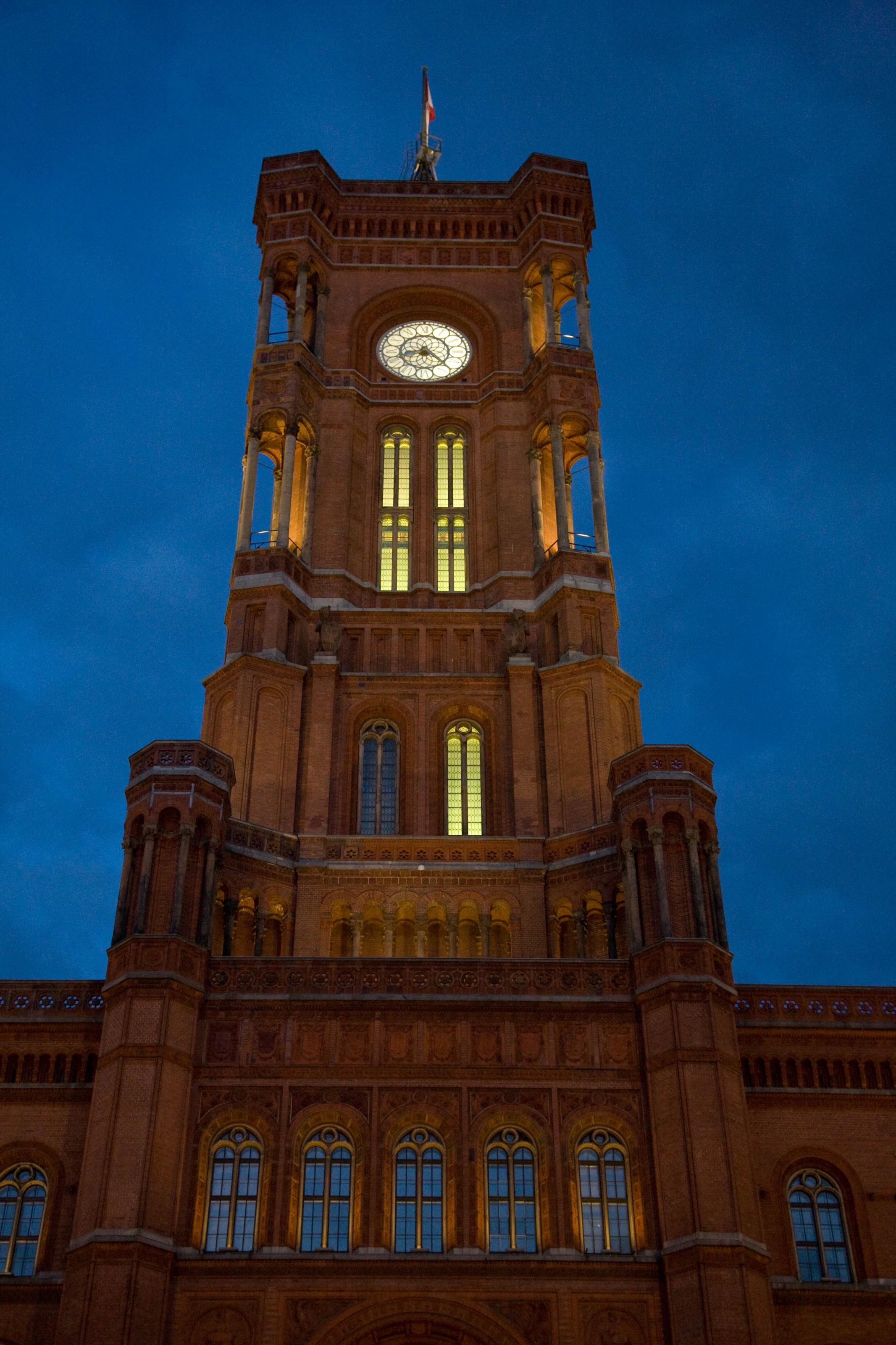 Rotes Rathaus en röd byggnad i centrala Berlin, Tysland.Sökord: rotesrathausberlinerrathausbyggnaderberlintysklandnatt Storleken på denna bild är 2133 x 3200 pixlar. Denna bild har mycket hög upplösning. Detta ger en bild på 18 x 27 cm med 300 dpi. Bildens id är 4243, anges vid beställning.