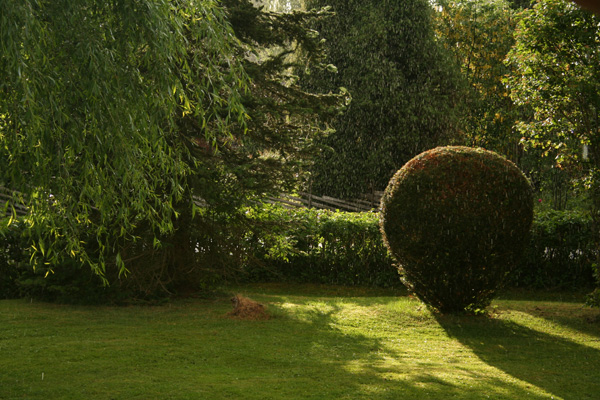 Buskar och grön natur en regnig dag.Sökord: buskarträdgräsmattaregnregnigtregnar Storleken på denna bild är 600 x 400 pixlar. OBS! Denna bild har låg upplösning. Det kan finnas liknande bilder med hög upplösning. Detta ger en bild på 5 x 3 cm med 300 dpi. Bildens id är 1524, anges vid beställning.