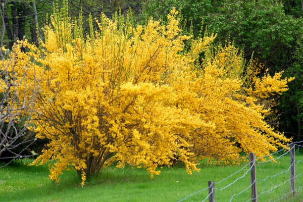 En stor vacker forsythia i trädgården.Sökord: Forsythianbuskeväxtträdblommorgulträdgårdträdgräs Storleken på denna bild är 600 x 400 pixlar. OBS! Denna bild har låg upplösning. Det kan finnas liknande bilder med hög upplösning. Detta ger en bild på 5 x 3 cm med 300 dpi. Bildens id är 907, anges vid beställning.