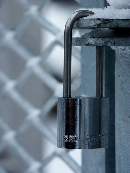 Hänglås med stängsel i bakgrunden.Sökord: låsgallerdörrfencestängselpadlockwinterdoor Storleken på denna bild är 450 x 600 pixlar. OBS! Denna bild har låg upplösning. Det kan finnas liknande bilder med hög upplösning. Detta ger en bild på 4 x 5 cm med 300 dpi. Bildens id är 277, anges vid beställning.