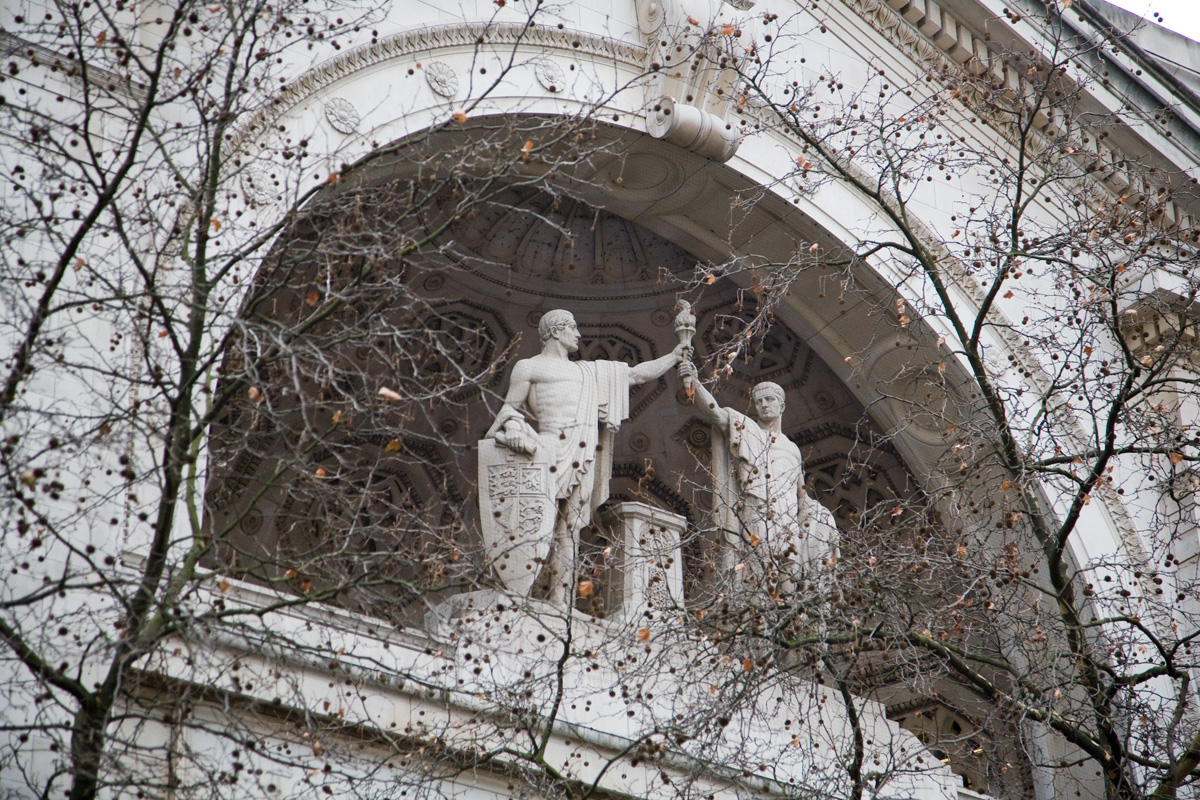 Staty ovanför ingången till Bush House i London, England.Sökord: bushhousebvshhovsebbcenglandlondonstatybyggnad Storleken på denna bild är 1200 x 800 pixlar. Detta ger en bild på 10 x 7 cm med 300 dpi. Bildens id är 4040, anges vid beställning.