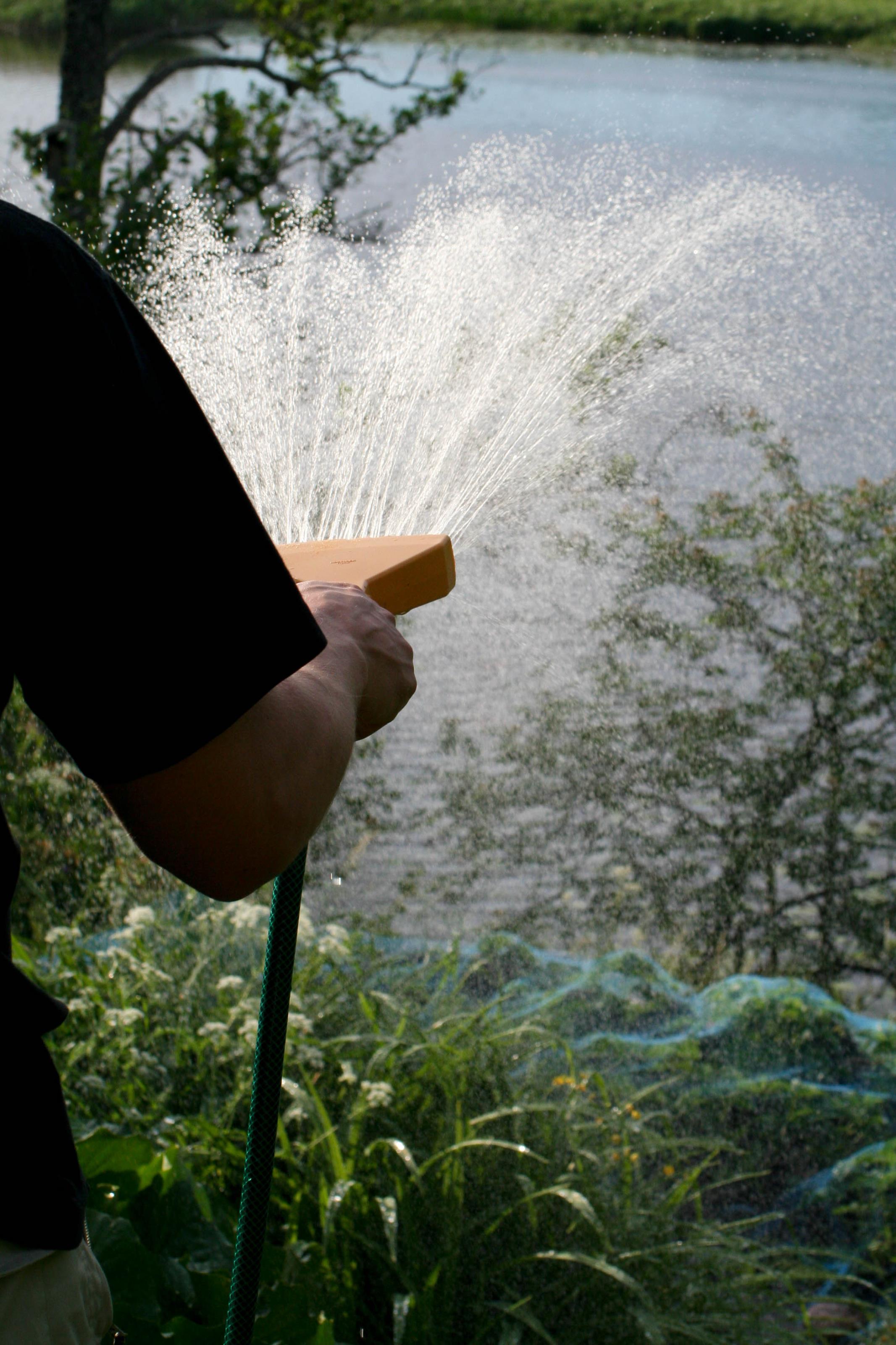 Någon vattnar sitt land med en vattenslang.Sökord: vattnavattenbevattningpersonmänniskamänniskorlandväxter Storleken på denna bild är 2133 x 3200 pixlar. Denna bild har mycket hög upplösning. Detta ger en bild på 18 x 27 cm med 300 dpi. Bildens id är 5364, anges vid beställning.