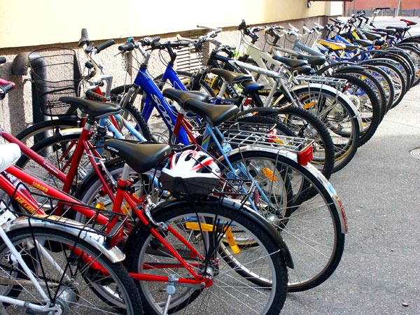 Massa cyklar står parkerade.Sökord: cykelcyklartrafikfordonhjul Storleken på denna bild är 600 x 450 pixlar. OBS! Denna bild har låg upplösning. Det kan finnas liknande bilder med hög upplösning. Detta ger en bild på 5 x 4 cm med 300 dpi. Bildens id är 155, anges vid beställning.