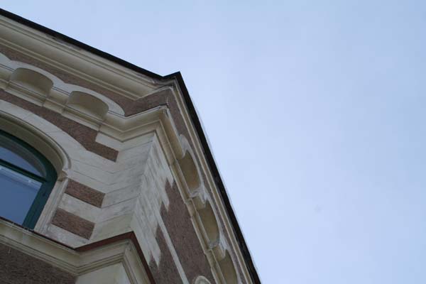 Hörn på en byggnad.Sökord: fönstervägggrönhimmelfastighethushörnbuildinghouseroofwindowsky Storleken på denna bild är 600 x 400 pixlar. OBS! Denna bild har låg upplösning. Det kan finnas liknande bilder med hög upplösning. Detta ger en bild på 5 x 3 cm med 300 dpi. Bildens id är 441, anges vid beställning.