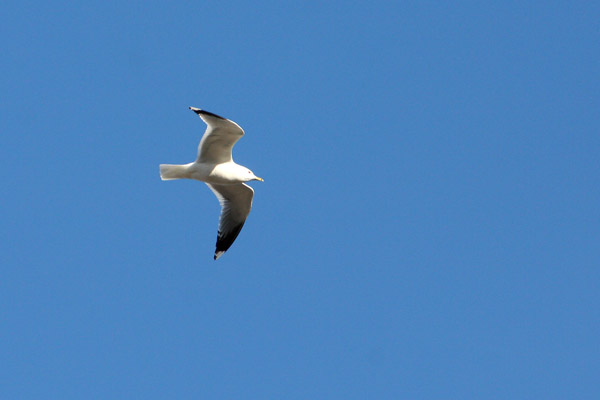 En fiskmås som flyger i den molnfria himlen.Sökord: blåhimmelfiskmåsmåsfågelblueskybirdseagull Storleken på denna bild är 600 x 400 pixlar. OBS! Denna bild har låg upplösning. Det kan finnas liknande bilder med hög upplösning. Detta ger en bild på 5 x 3 cm med 300 dpi. Bildens id är 762, anges vid beställning.
