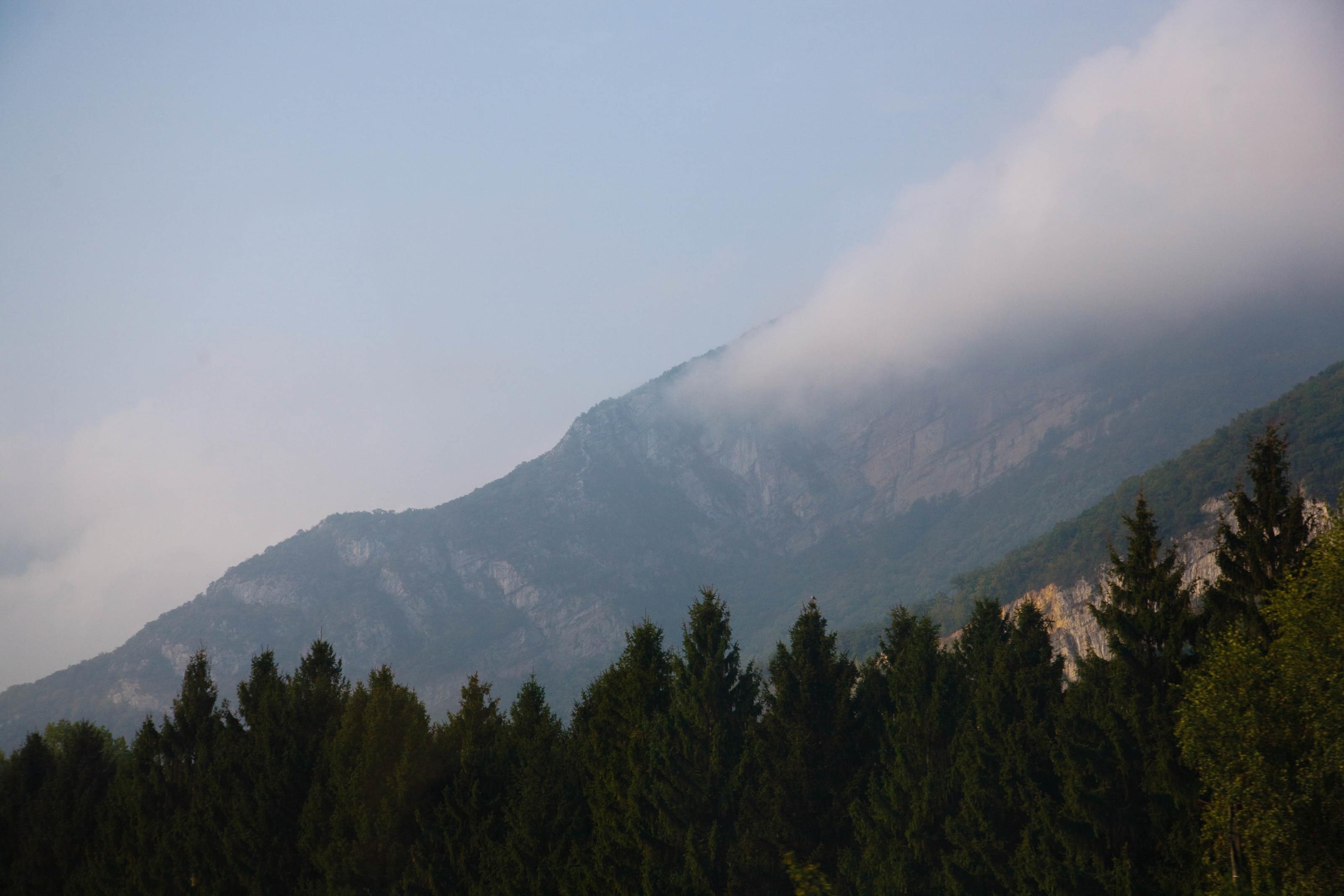 Berg i franska alperna. Fyllda med dimma och moln som solen inte hunnit bränna bort.Sökord: alperalpernabergdimmadisfrankrikemoln Storleken på denna bild är 3200 x 2134 pixlar. Denna bild har mycket hög upplösning. Detta ger en bild på 27 x 18 cm med 300 dpi. Bildens id är 7402, anges vid beställning.