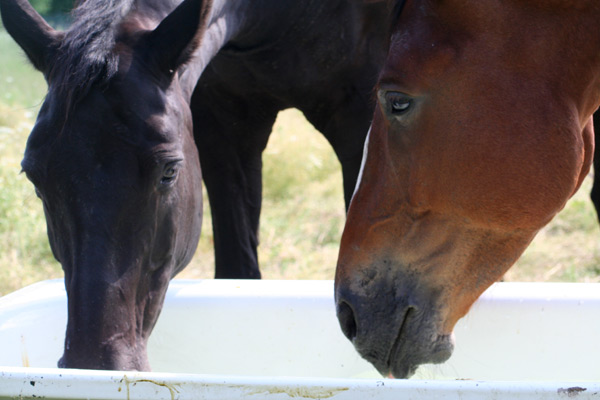 Två törstiga hästar som dricker vatten.Sökord: hästhästarvattenhage Storleken på denna bild är 600 x 400 pixlar. OBS! Denna bild har låg upplösning. Det kan finnas liknande bilder med hög upplösning. Detta ger en bild på 5 x 3 cm med 300 dpi. Bildens id är 1374, anges vid beställning.