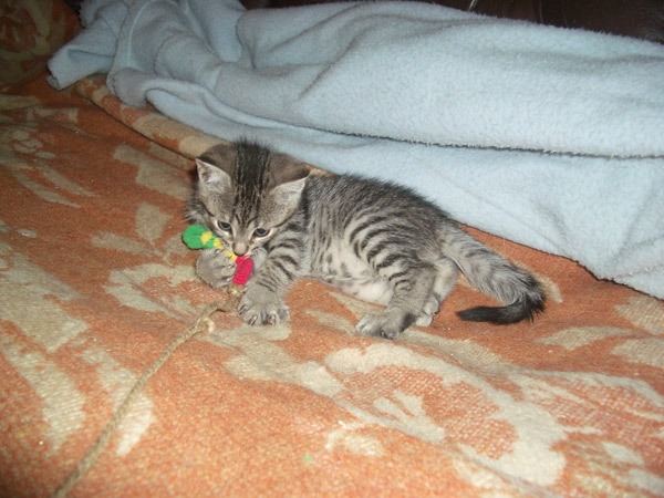 En liten kattunge leker med leksak.Sökord: kattlekalekerkissekattunge Storleken på denna bild är 600 x 450 pixlar. OBS! Denna bild har låg upplösning. Det kan finnas liknande bilder med hög upplösning. Detta ger en bild på 5 x 4 cm med 300 dpi. Bildens id är 1858, anges vid beställning.