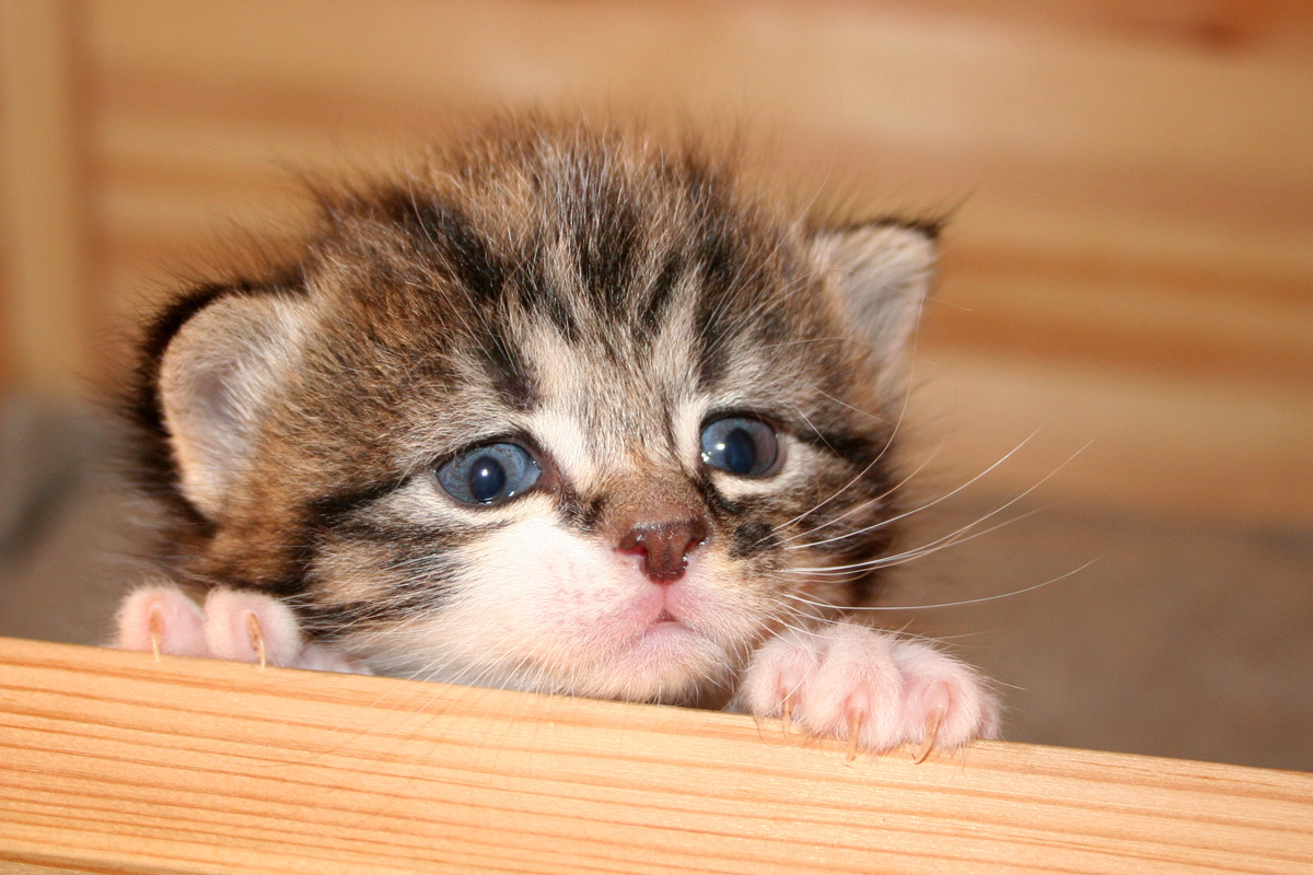 En kattunge tittar över kanten på en trälåda.Sökord: kattungekattsjurtassarklorögon Storleken på denna bild är 1200 x 800 pixlar. Detta ger en bild på 10 x 7 cm med 300 dpi. Bildens id är 2561, anges vid beställning.
