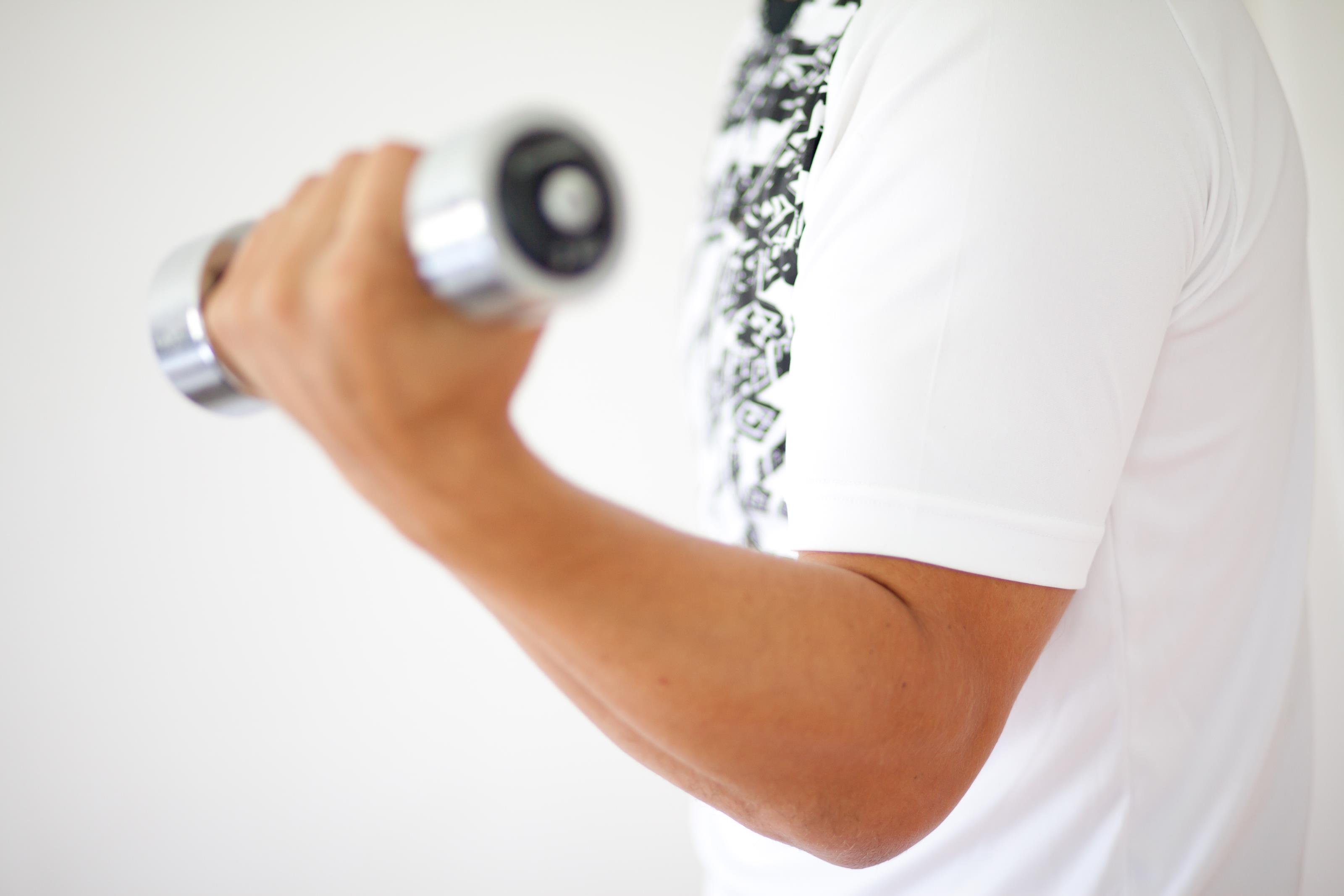 En fintesskille tränar på gym. Sökord: arm armar bodybuilding fitness fritid gym hantel hantlar hälsa hälsan kille kroppen kroppsbyggare man maskulin motion muskel musklar män människa människor måbra person styrketräning träning träningsredskap