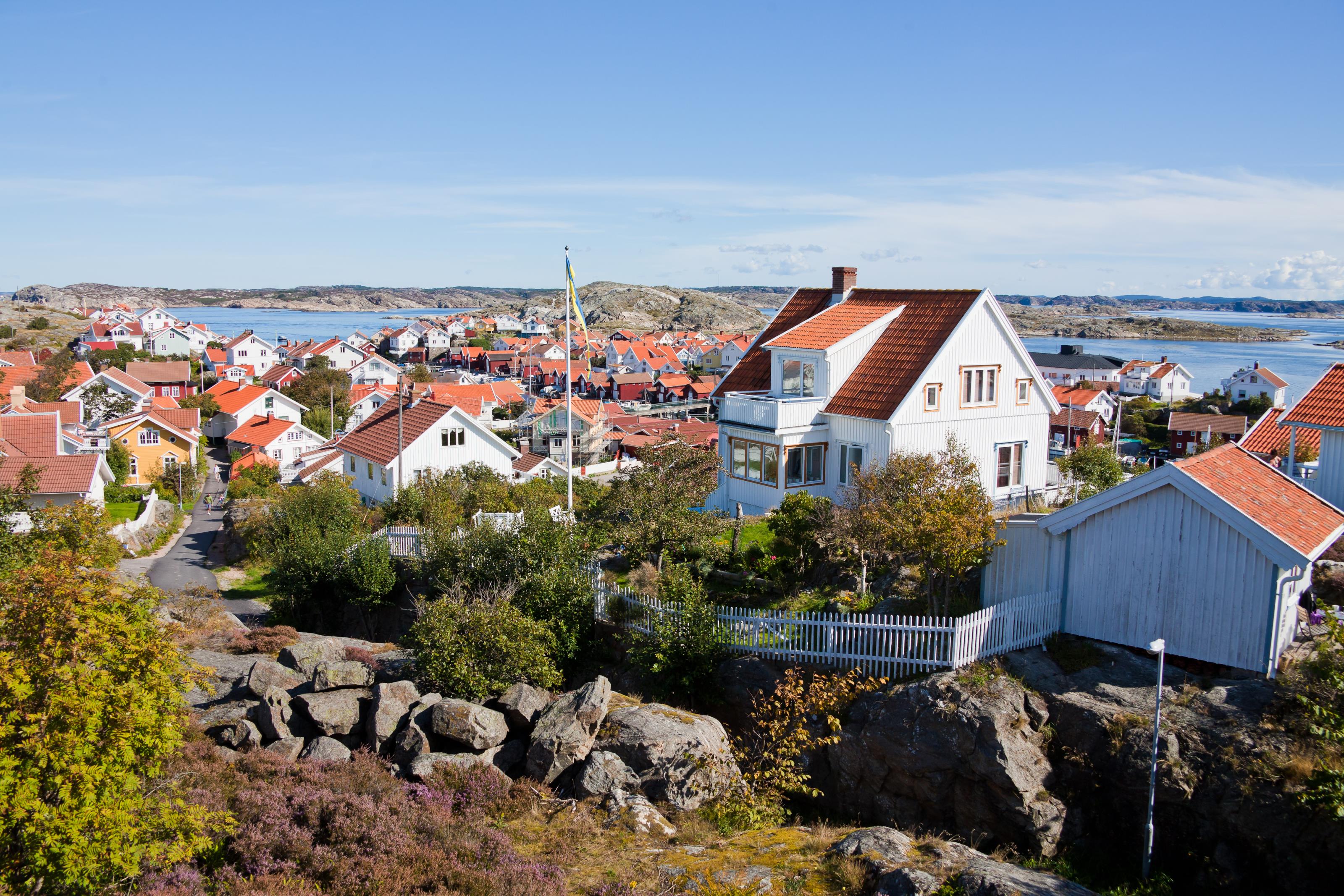 Vy från Gullholmen på Härmanö. Sökord: bohuslän by gullholmen hustak härmanö kust kusten soligt sommar västkust västkusten