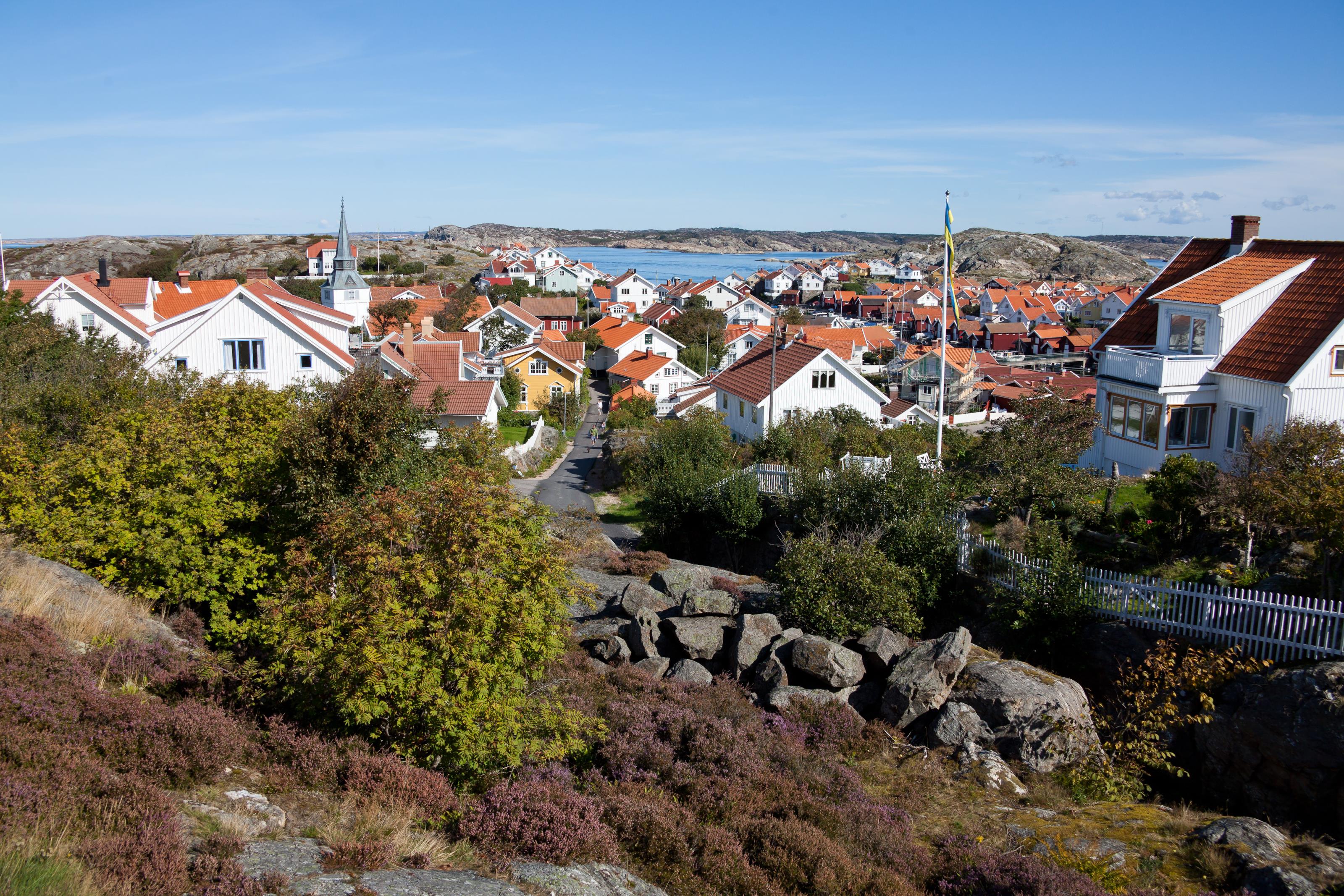Vy från Gullholmen på Härmanö. Sökord: bohuslän by gullholmen hustak härmanö kust kusten soligt sommar västkust västkusten
