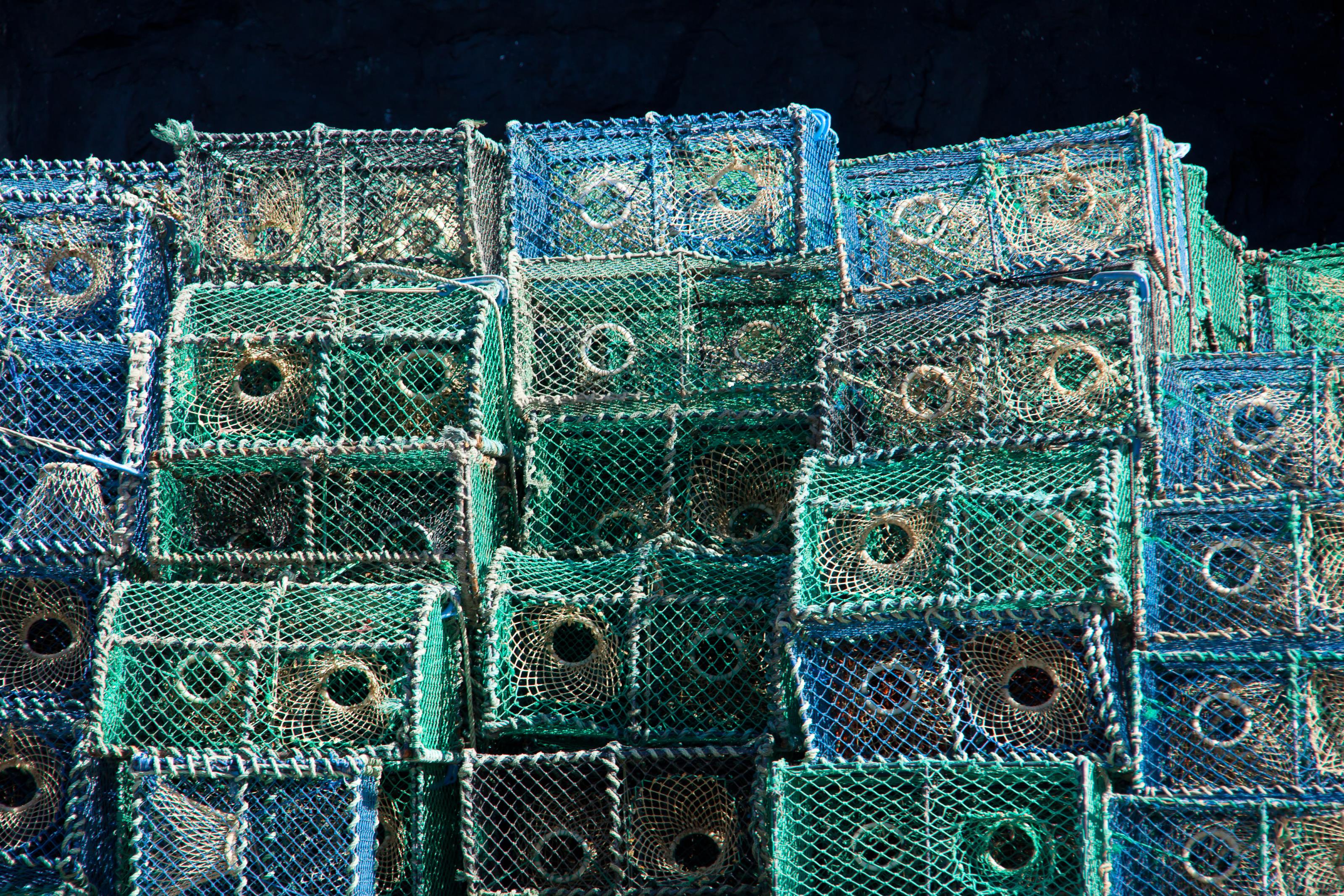 Travade hummertinor. Sökord: bohuslän bur fiske fiskeredskap fånga grundsund hummer hummerbur hummertina hummertinor kust kusten soligt sommar tina tinor västkust västkusten