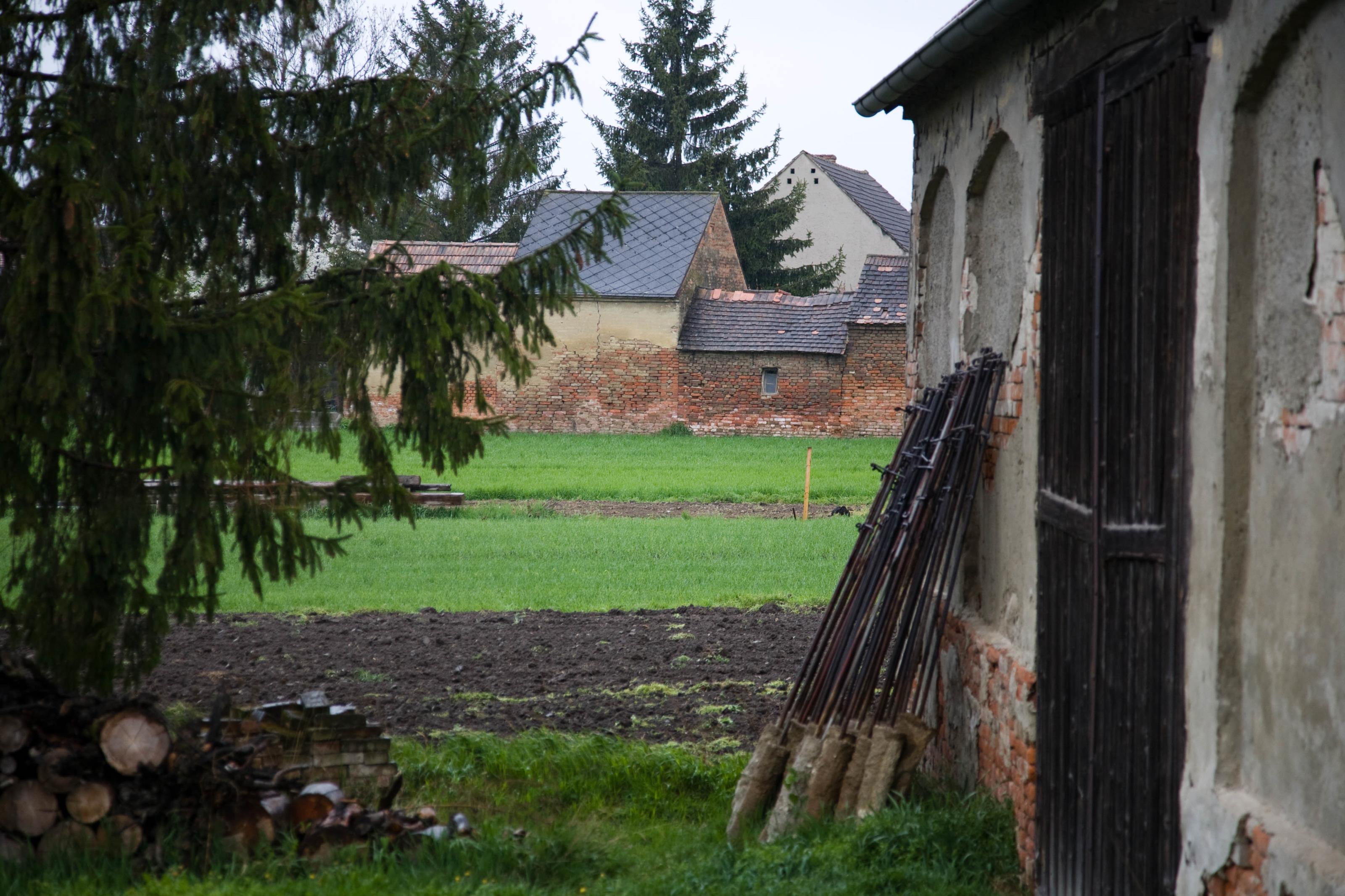Åkermark och en liten lada i Poysdorfer i Österrike.