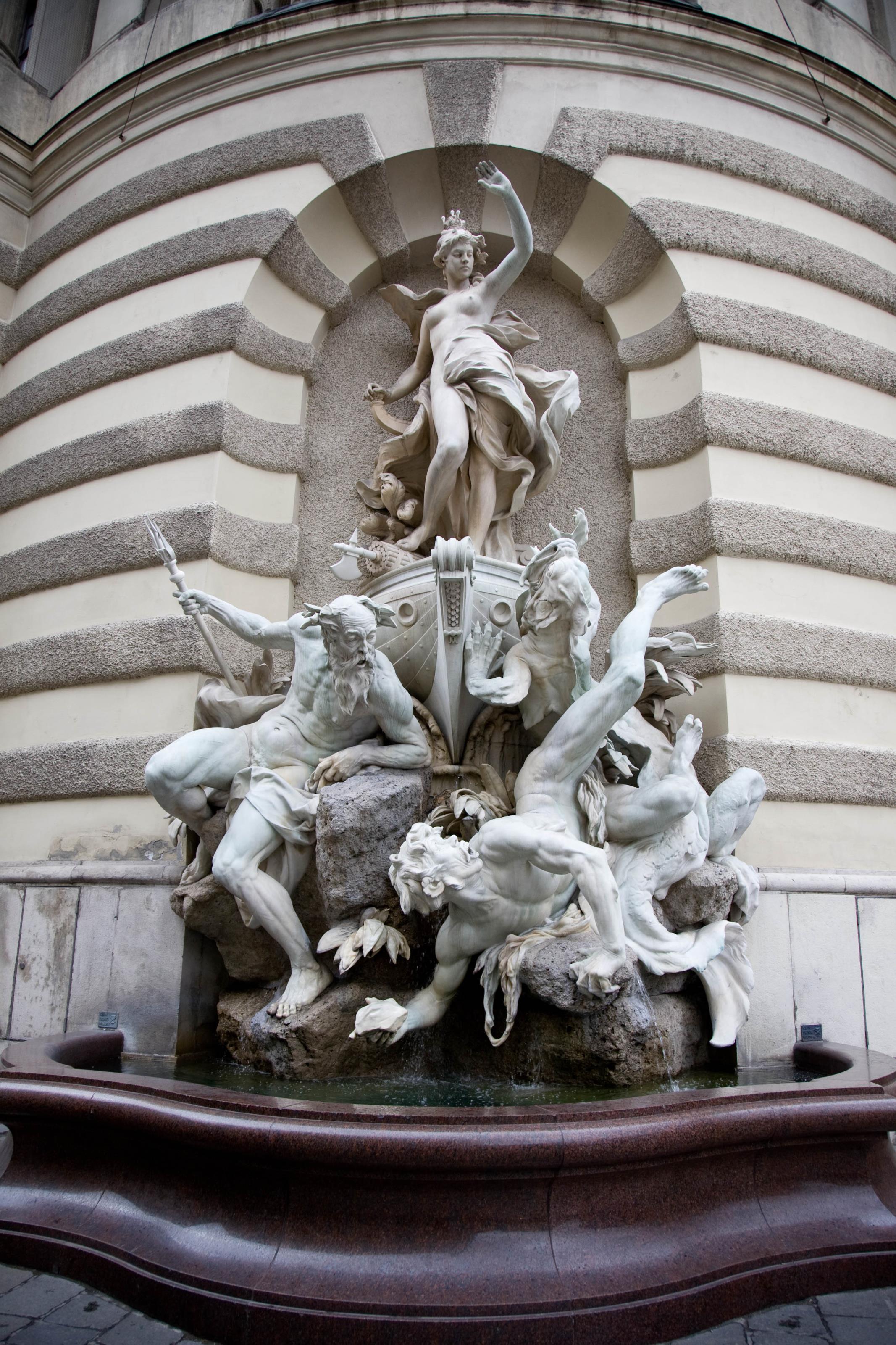 Barbröstad kvinna högst upp på skulpturen Macht zur See på Michaelerplatz i Wien, Österrike.Sökord: skulpturmonumentfontänkvinnabrösthavmänodjurmichaelerplatzwienösterrike Storleken på denna bild är 2133 x 3200 pixlar. Denna bild har mycket hög upplösning. Detta ger en bild på 18 x 27 cm med 300 dpi. Bildens id är 4444, anges vid beställning.