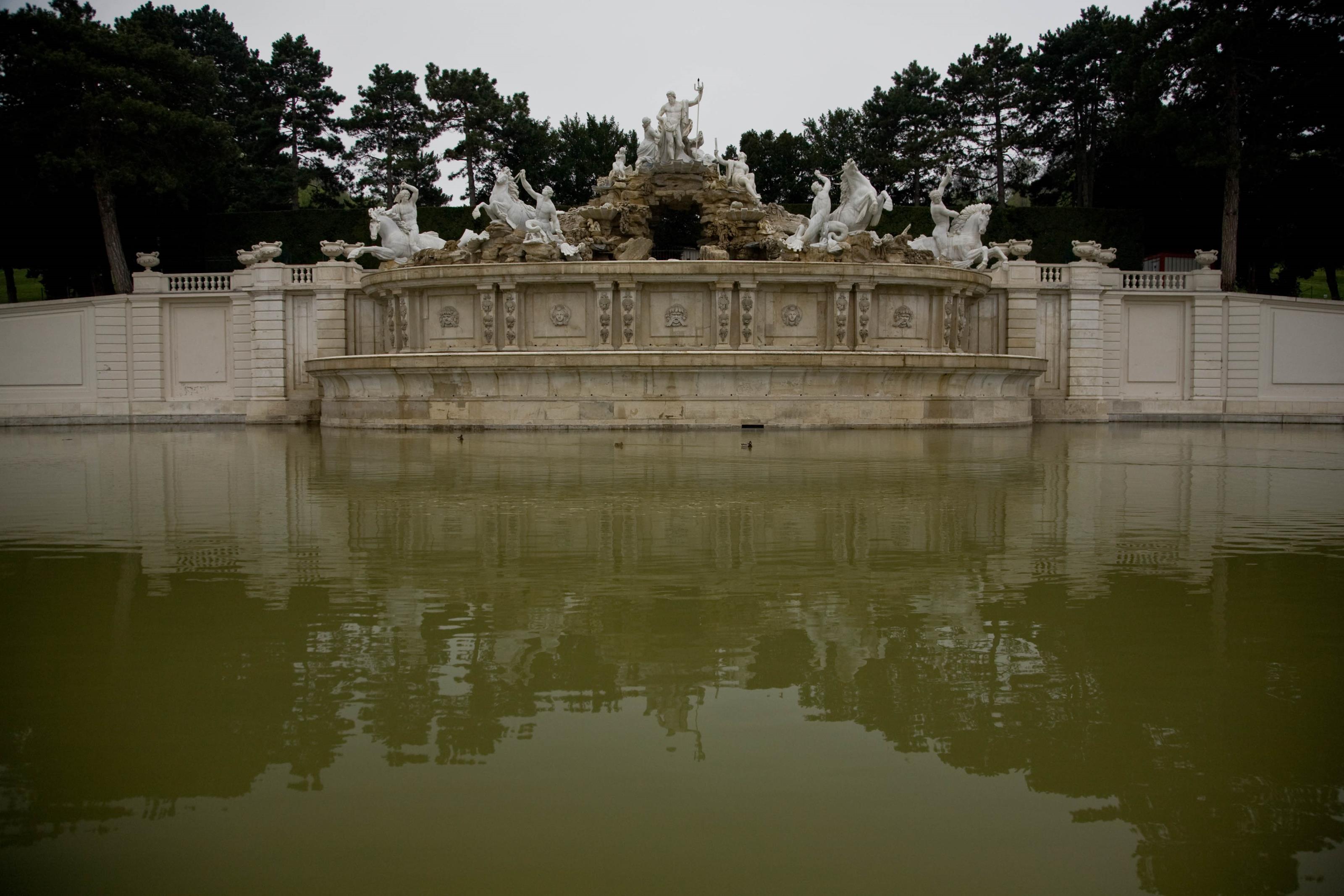 Neptunbrunnen, Neptunfontänen, i Großes parterre vid slottet Schönbrunn i Wien, Österrike. Sökord: wien österrike slott slottet schönbrunn großes parterre grosses stora trädgården neptunbrunnen neptunus fontän vatten monument