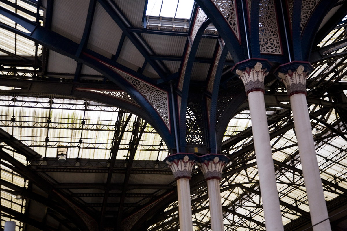 Det vackra taket på Liverpool Station i London, England.Sökord: takglaslondonenglandliverpoolstationpelare Storleken på denna bild är 1200 x 800 pixlar. Detta ger en bild på 10 x 7 cm med 300 dpi. Bildens id är 4025, anges vid beställning.