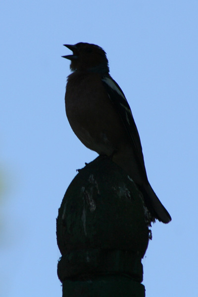 En fågel sitter och kvittrar. På detta foto kan associeras till: fågel, fågelsång, kvitter, kvittra, sommar.
