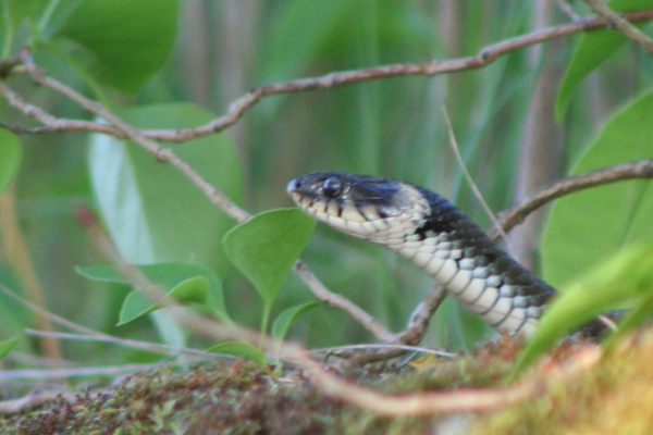 En snok ser ut att speja, känner vittring. På detta foto kan associeras till: snok, orm, sommar, svensk.