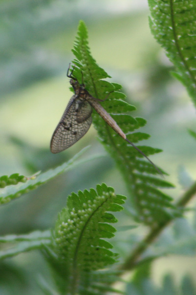 En insekt sitter under en ormbunke. På detta foto kan associeras till: insekt, vingar, ormbunke.