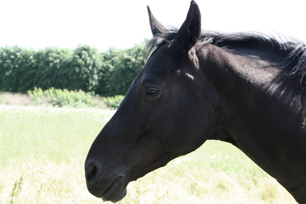 En svart häst.Sökord: svarthästmuleprofilhästhagehage Storleken på denna bild är 600 x 400 pixlar. OBS! Denna bild har låg upplösning. Det kan finnas liknande bilder med hög upplösning. Detta ger en bild på 5 x 3 cm med 300 dpi. Bildens id är 1440, anges vid beställning.