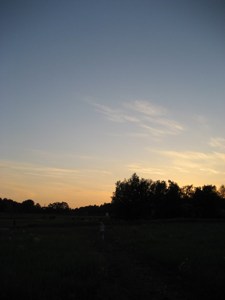 Sommaräng med solnedgång bakom träden Sökord: sommaräng solnedgång äng