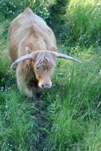 En ko promenarar på en stig i gräset.Sökord: kokossahornstiggräshagekohage Storleken på denna bild är 400 x 600 pixlar. OBS! Denna bild har låg upplösning. Det kan finnas liknande bilder med hög upplösning. Detta ger en bild på 3 x 5 cm med 300 dpi. Bildens id är 1491, anges vid beställning.