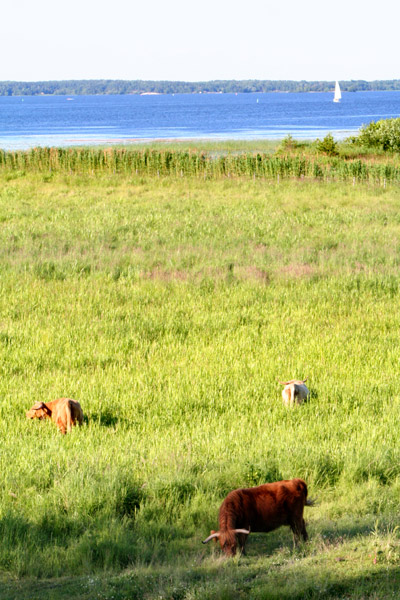 Kohage med betande kor i förgrunden och en blå sjö i bakgrunden.Sökord: sjöhavvattenbåtsegelbåtsegelhagekohagekokossakossorkorlandskapvynaturgräs Storleken på denna bild är 400 x 600 pixlar. OBS! Denna bild har låg upplösning. Det kan finnas liknande bilder med hög upplösning. Detta ger en bild på 3 x 5 cm med 300 dpi. Bildens id är 1492, anges vid beställning.