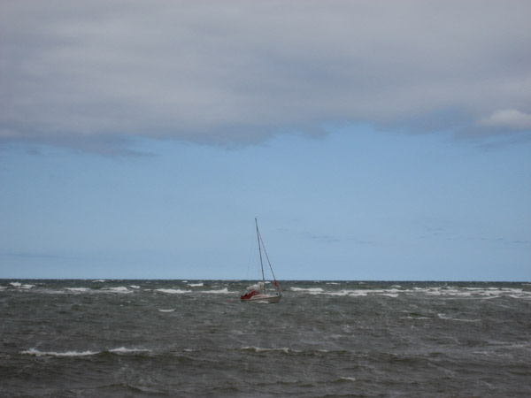 en segelbåt som kämpar i vågor På detta foto kan associeras till: segelbåt, vågor, hav, vatten.