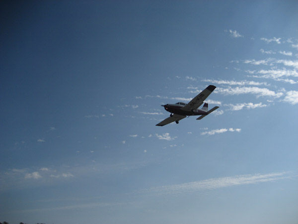 En cherokee på väg inför landning På detta foto kan associeras till: flygplan, p-28, landning, flyg, flyga.