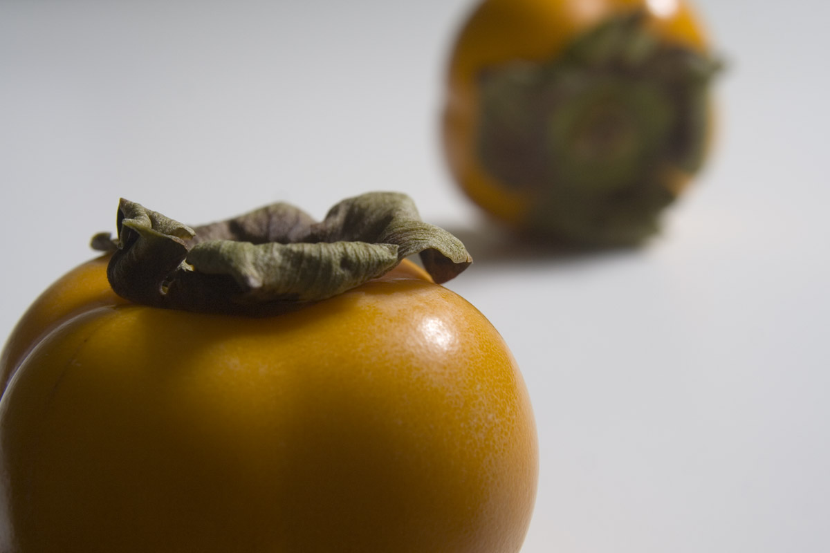 Två sharonfrukter.Sökord: fruktsharonorange Storleken på denna bild är 1200 x 800 pixlar. Detta ger en bild på 10 x 7 cm med 300 dpi. Bildens id är 2540, anges vid beställning.