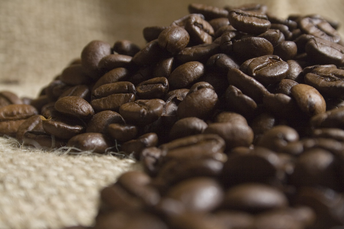 En hög med hela kaffebönor. På detta foto kan associeras till: kaffe, kaffebönor, kaffeböna, hela, rostade.