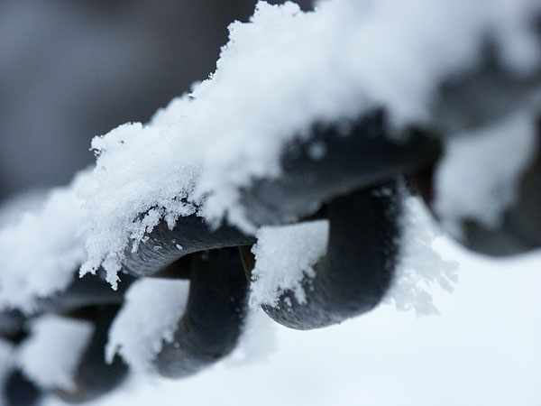En svart kedja med snö på.Sökord: snöiskedjakättinglänkchainlinksnowwinter Storleken på denna bild är 600 x 450 pixlar. OBS! Denna bild har låg upplösning. Det kan finnas liknande bilder med hög upplösning. Detta ger en bild på 5 x 4 cm med 300 dpi. Bildens id är 283, anges vid beställning.